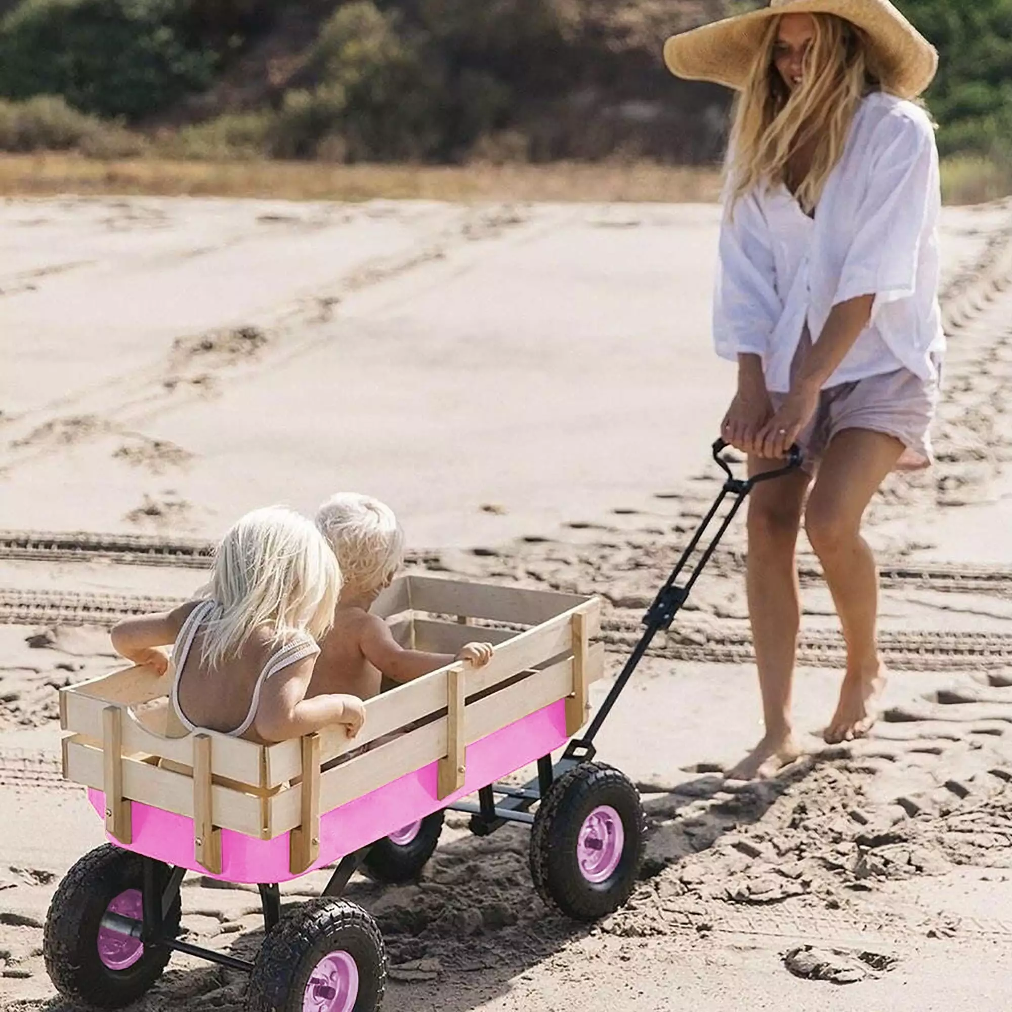 Glavbiku All Terrain Steel Outdoor Cargo Wagon.Trolley Cart with Wood Railing for Garden.39.3L.Pink
