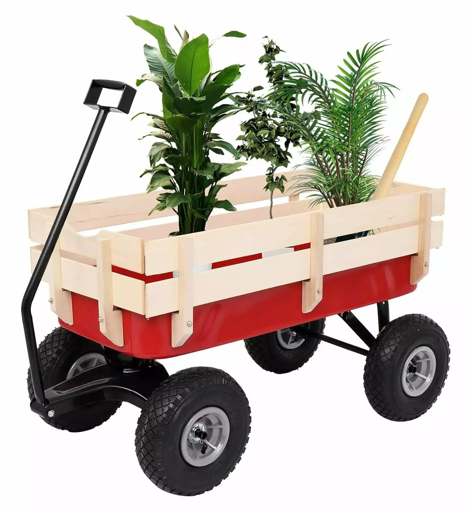 $39.41 – $43.43Price range: $39.41 through $43.43Homehours Outdoor All- Cargo Wagon with 10 Air Tires. Steel Structure Wooden Side Support Wagon for Kids. Garden and Cargo (Red)