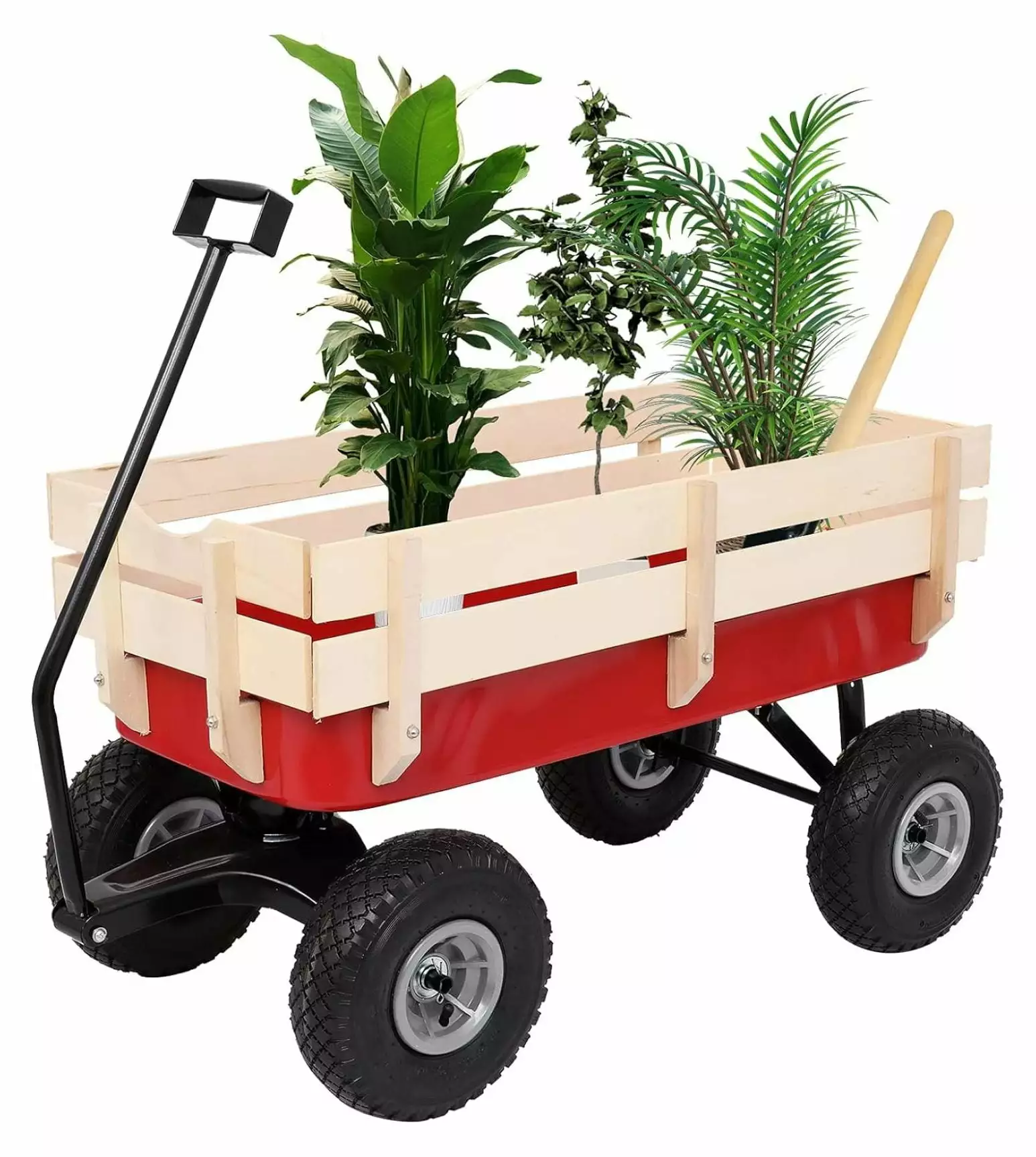 All Terrain Cargo Wagon Wood Railing Kids Children Garden Air Tires Outdoor Red