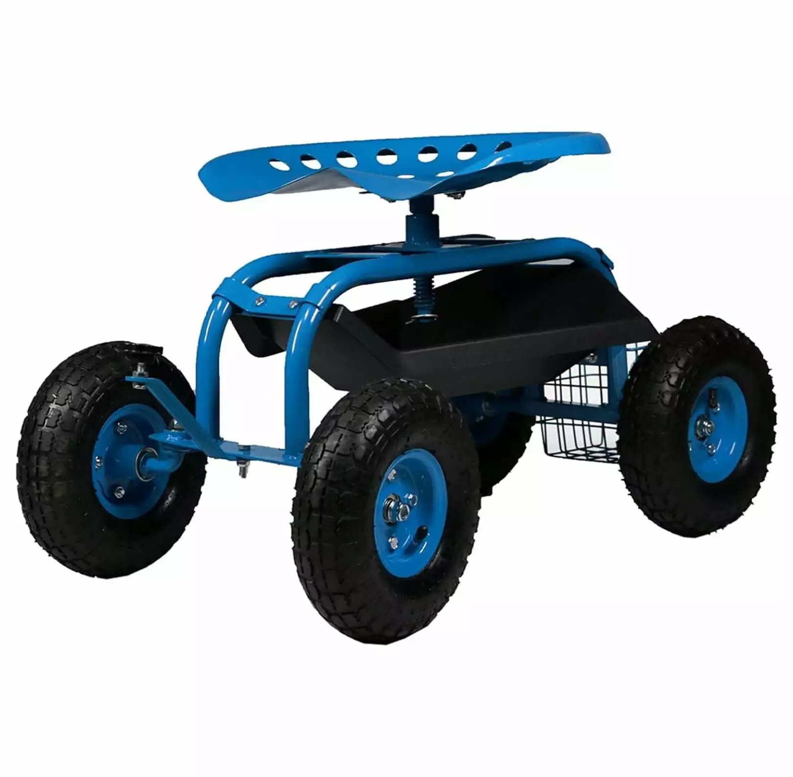 Luwei Rolling Gardening Cart with Adjustable 360-Degree Swivel Seat – Utility Tool Tray and Storage Binquireet – Blue