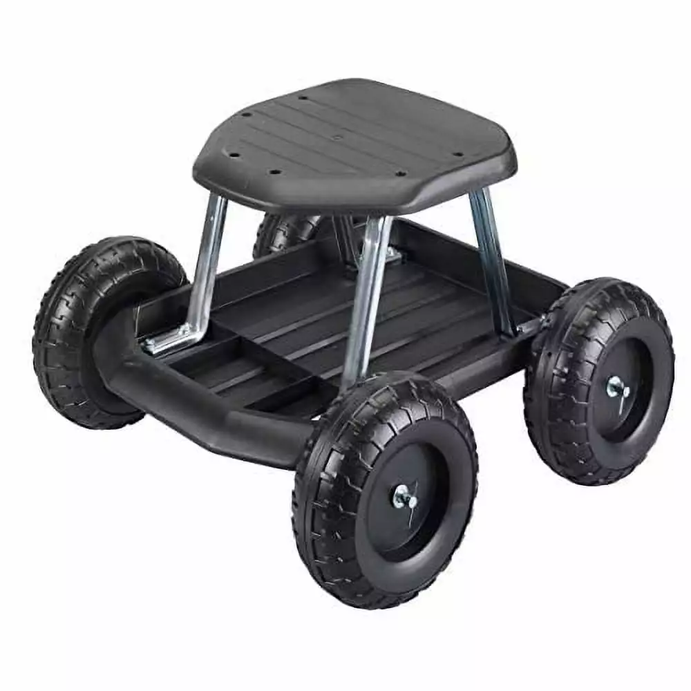 Rolling Garden Cart Scooter with Seat and Utility Tool Storage Tray. Black