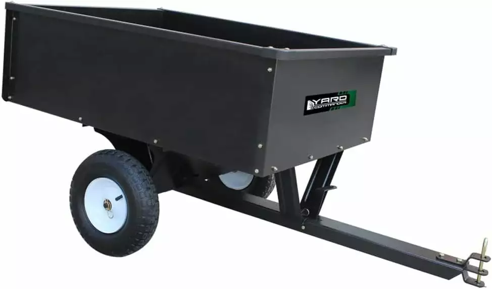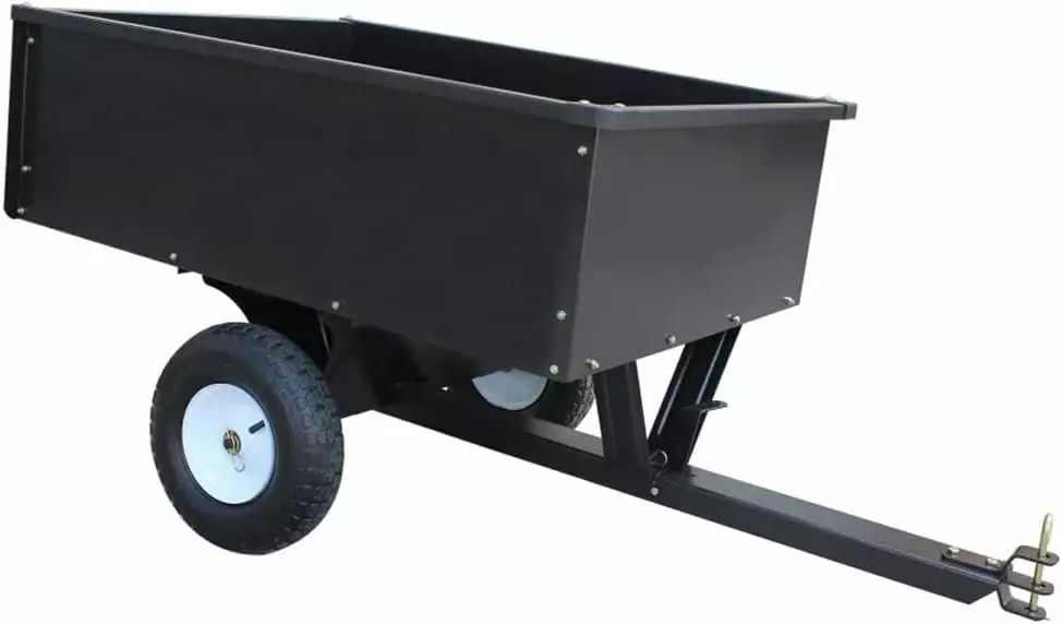 Heavy Duty Tow Behind ATV Trailer Steel Dump Cart – 10-Cubic Feet and 400-Pound Capacity – Garden Utility Trailer – Trailers with Removable Tailgate for Riding Lawn Mower Tractor