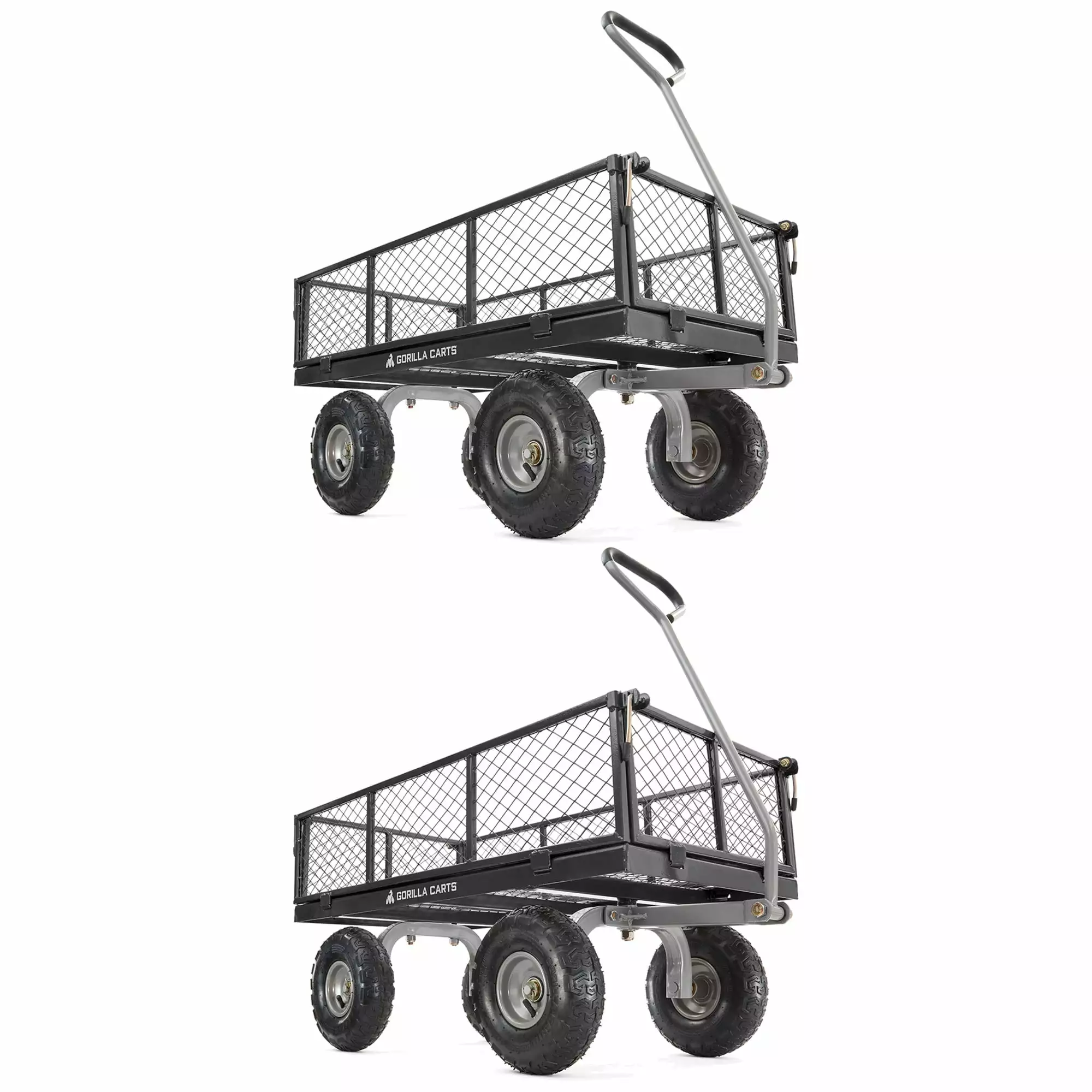 Gorilla Carts 1200-lb. Heavy-Duty Steel Utility Wagon. 9 Cu Ft. 46 in. x 30 in. Steel Mesh Bed