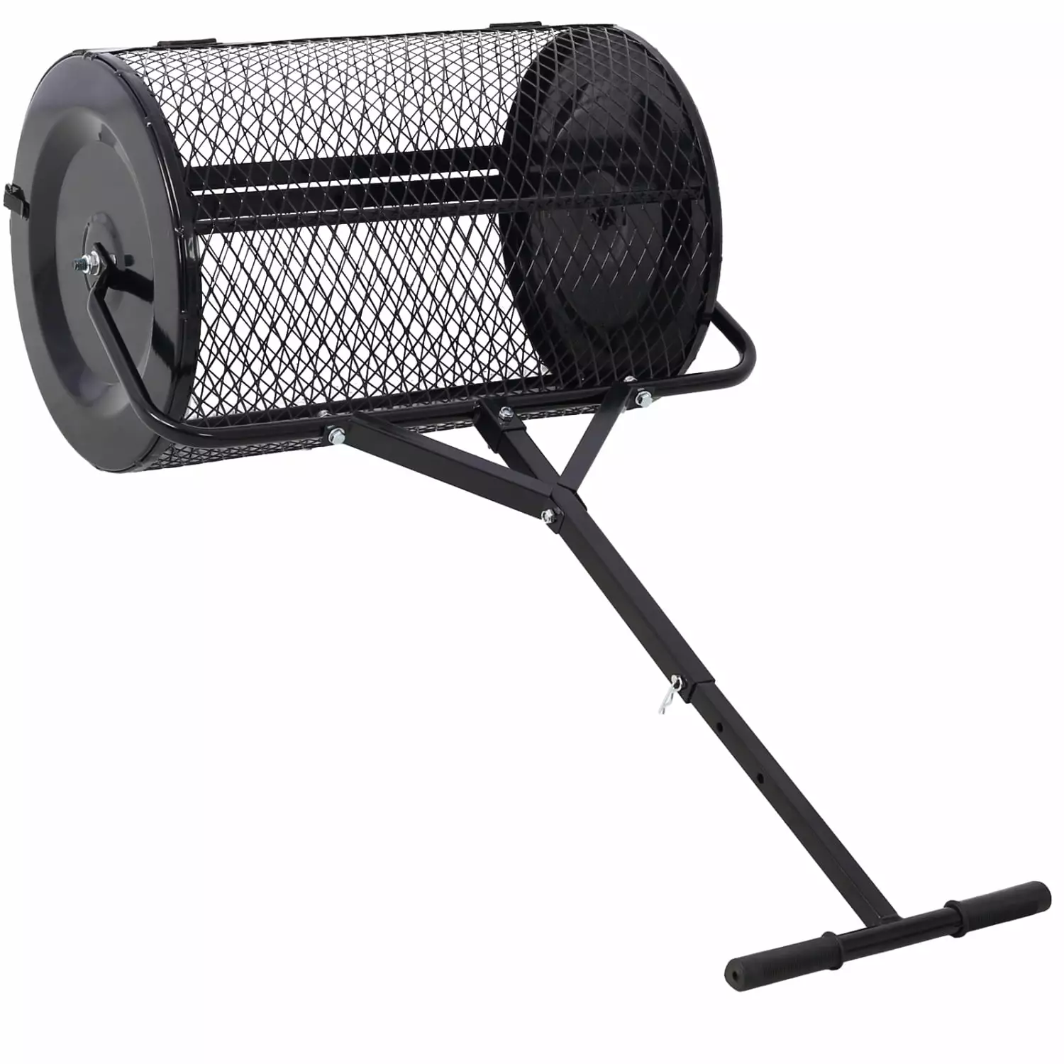 Heavy Duty Black 24inch Peat Moss Spreader for Lawn and Garden Care Long-lasting Metal Mesh Compost Spreader with T-shaped Handle for Planting and Seeding Productive Roller Manure Spreaders f