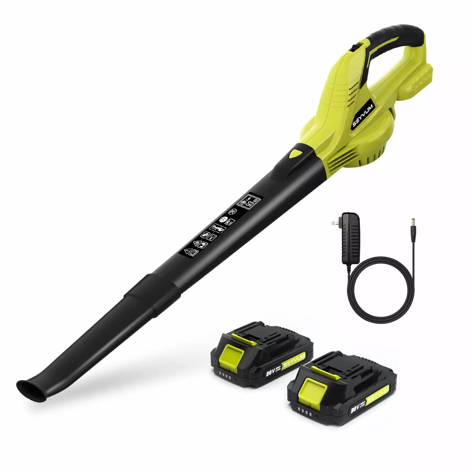 SEYVUM 20V Cordless Leaf Blower with two Batteries and Charger. 150MPH 320CFM Electric Leaf Blower for Lawn Care. Patio. Garden Cleaning. Featherweight