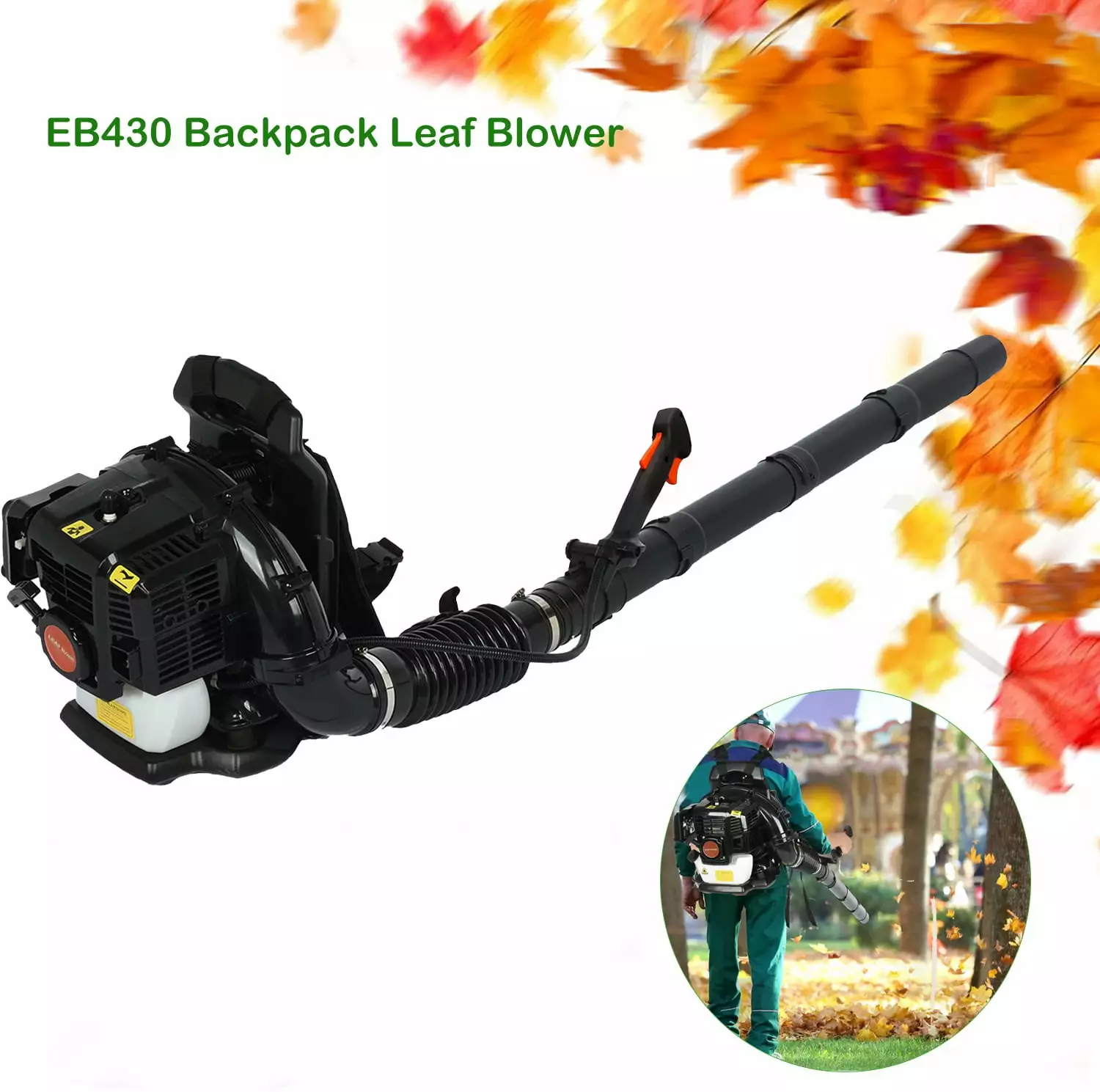 Limorve EB430 Backpack Leaf 550CFM 2-Stroke 1.7HP Snow Leaf Blower for Lawn Care. Patio. Sidewalk.Snow Blowing-Black