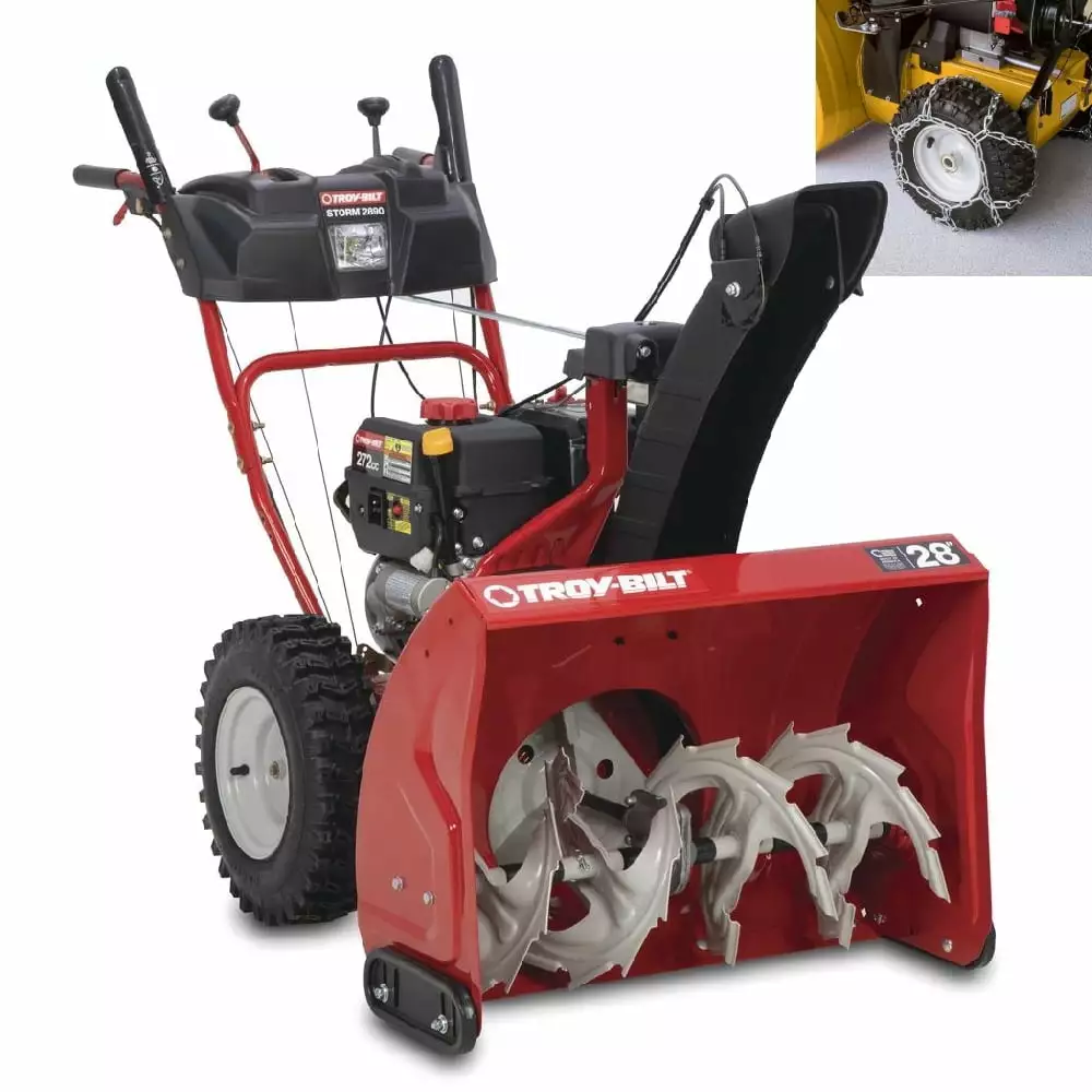 Restored Troy-Bilt Storm 2890 | 28-Inch Two-Stage Gas Snow Thrower | 272cc | Electric Start | Includes Snow Tire Chains (Refurbished)