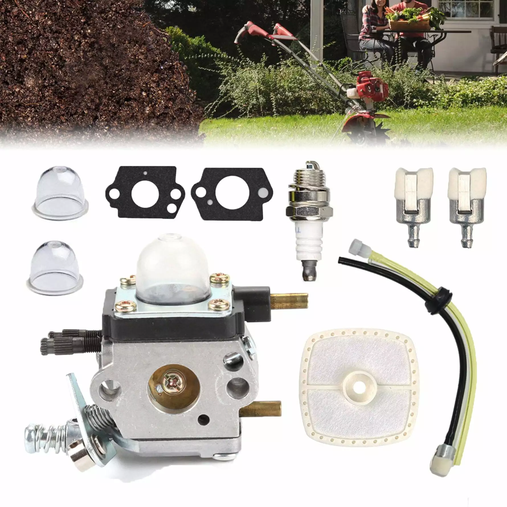 Carburetor 12520013124 C1U-K54A Carb Fit for Echo & Mantis 2 Cycle Tillers Cultivators TC-210 TC-210i. TC-2100 SV-6. SV-5H/2. SV-5C. SV-4B. LHD-1700. HC-1500 Carb 12520013128. 12520013127. 12520011821