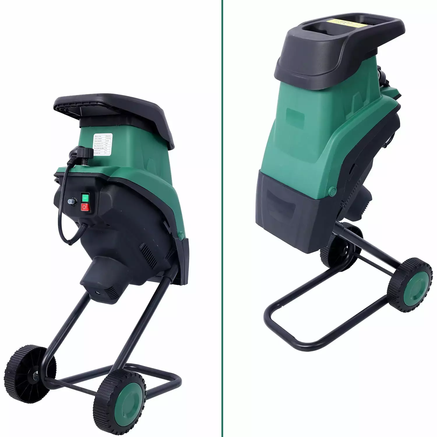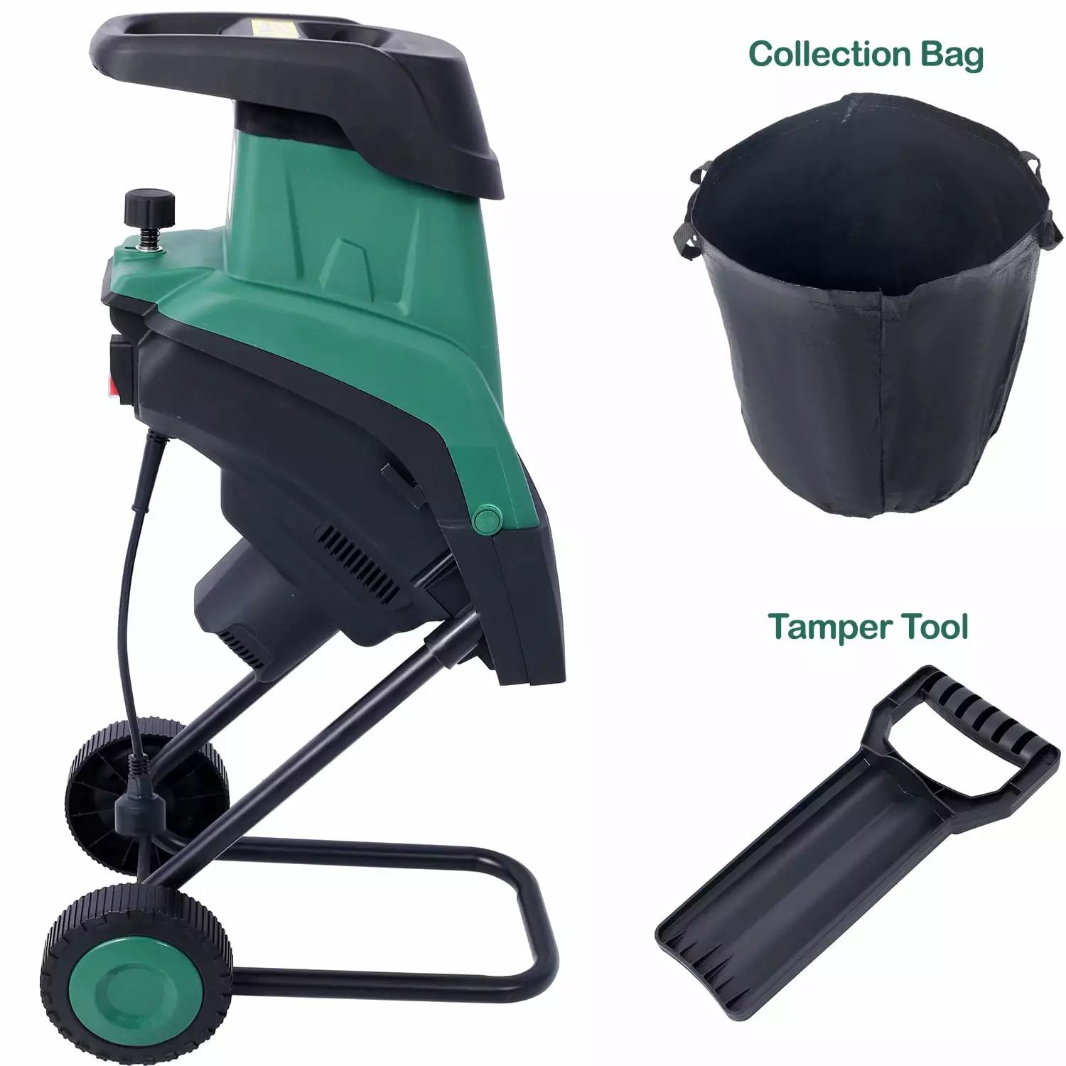 2600W Electric Wood Chipper. 15Amp Wood Chipper & Shredder Travel-friendly on Wheels. Leaf Shredder w/60L Gatherion Bag. 4500 RPM. Max 1.57” Cutting Dia