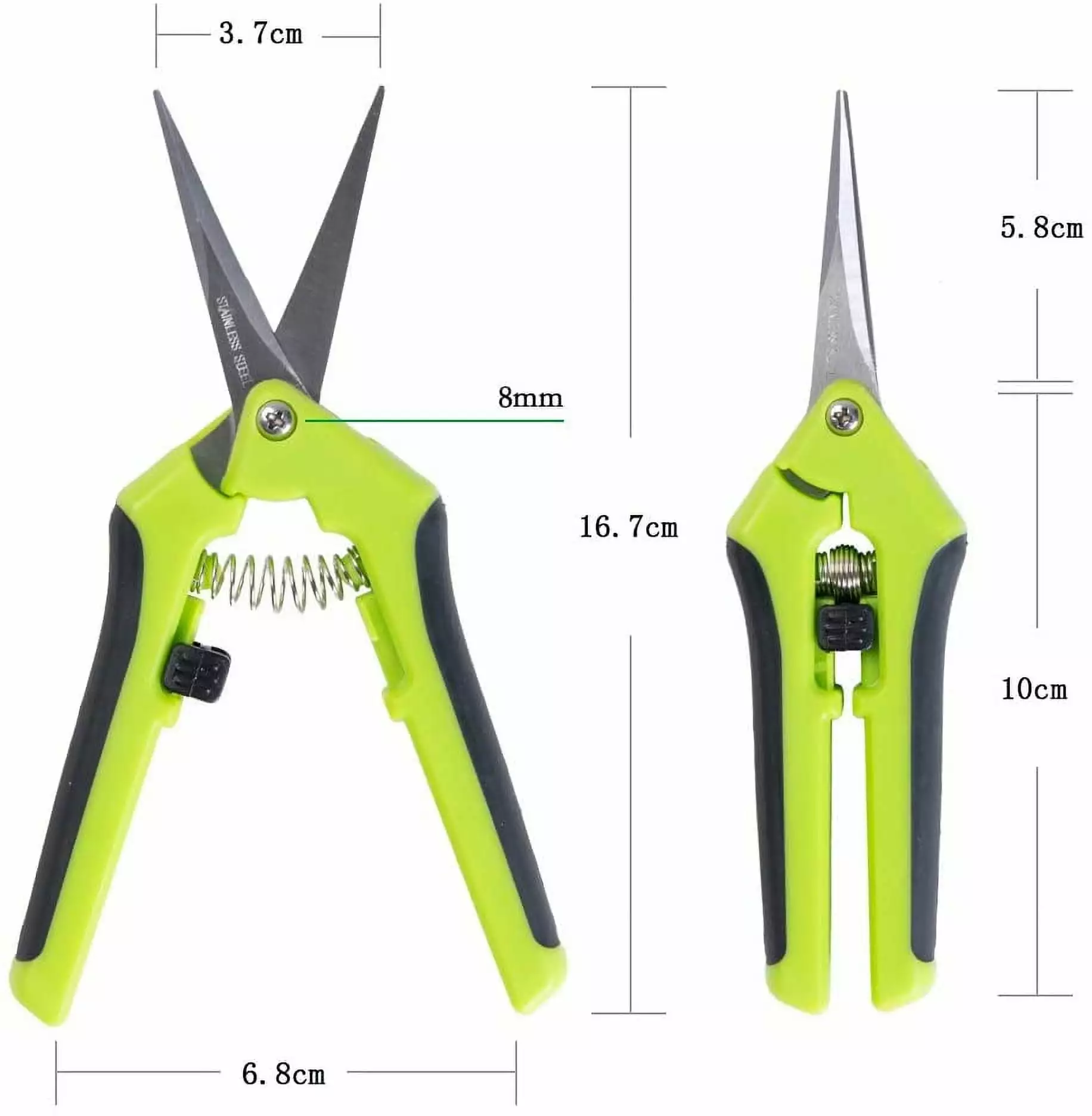 A set of 3 pieces of precision pruning shears.stainless steel blade;Pruning shears with adjustable handlessoft springs provide comfort to users;Pruning shears with non-slip handles. combined withwith rubber and plastic. light and comfortable to wear.hold;Ergonomic pruner design. humanized left and right hands. particularly comfortable;The pruners are perfectly suited to your needs.the size of flowers. bonsai trees. withered branches tosoft stem. pruning shrubs and flower stems. etc.