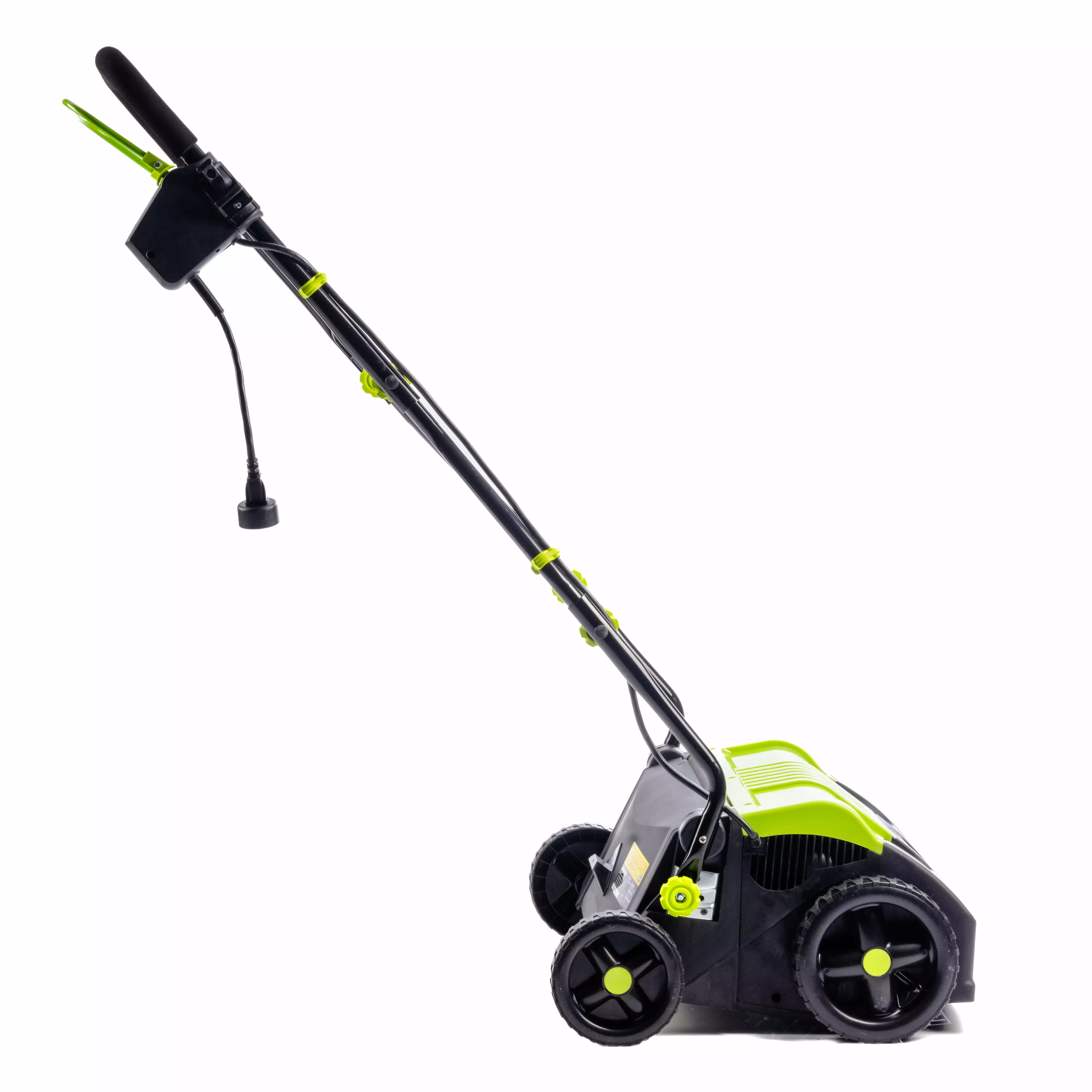 Commit to your lawn’s health with this Earthwise 13-Amp 16-Inch Corded Electric Dethatcher. With a 16" working width. easily loosen up layers of lawn and yard debris on small to large yards. 45 zinc-plated piano wire spring pins adjust from -0.4" to 0.4" to either scratch the surface or reach the grass roots for ultimate dethatching. 5-positions for easily setting your working depth. Easily remove rake for cleaning. Corded electric start with bail wire switch for ease of start and safety while in use. This corded dethatcher requires no gas or oil and is low maintenance for less hassle and clean-up. Earthwise- smart tools for people living on our favorite planet.