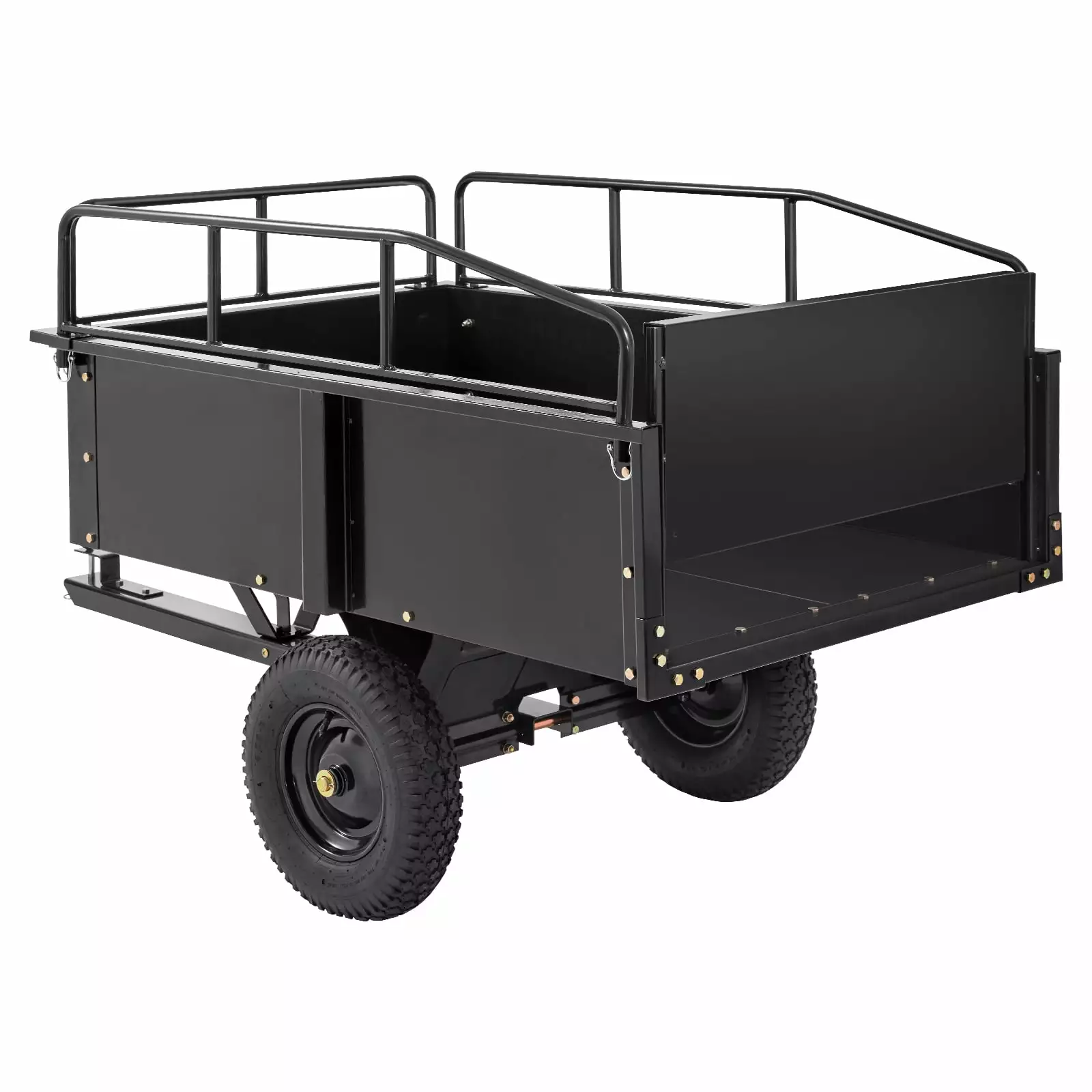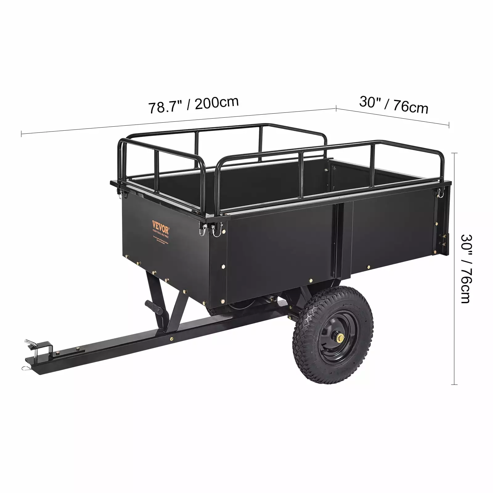- High Capacity Trailer: Our ATV dump cart has added railings on three sides and can hold 15 cubic feet of yard waste. Collect more wood. soil. or garbage at once. reducing the need for frequent trips. Handle your yard work in one fell swoop with our high-capacity trailer.