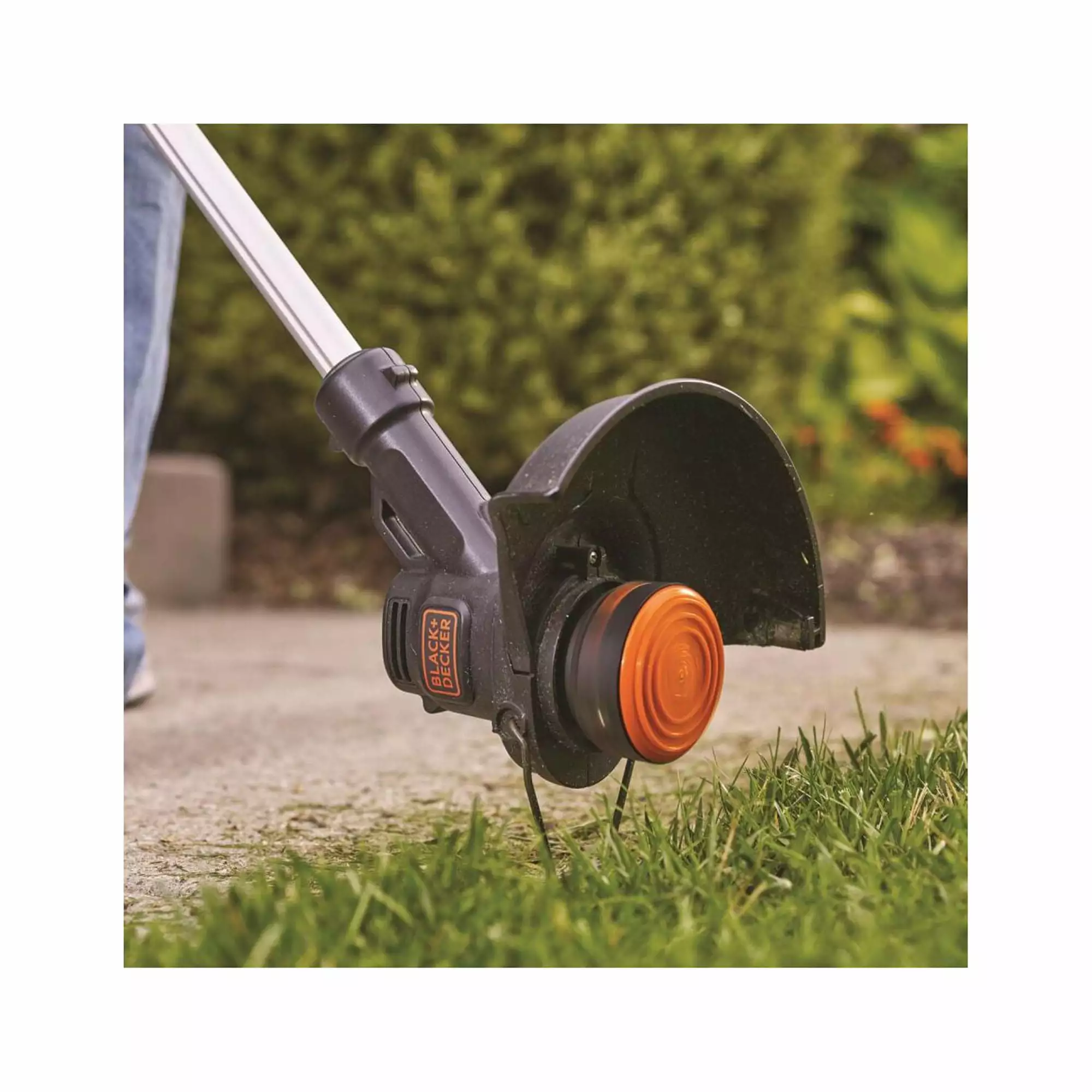 The BLACK+DECKER LST201 20V MAX* Lithium 10 Inch String Trimmer/Edger is a Part of the 20V MAX* System – 1 System. Endless Tasks. For your Style. This unit is designed for areas of overgrowth after mowing. and also for edging of grass around borders. walkways and posts. It easily converts from trimmer to wheeled edger. The Automatic Feed Spool (AFS) automatically feeds trimmer line when needed with no bumping required. It features a lightweight design of only 4.5 lbs.. with an adjustable height and handle for ideal user comfort. A 20V MAX* Lithium Ion 1.5Ah battery holds it’s charge for up to 18 months. Cut Swath – 10 in. Line Size – 0.065 in. RPM – 9.000. Replacement Spool – AF-100. Maximum initial battery voltage (measured without a workload) is 20 votes. Nominal voltage is 18. Includes: (1) LST201 20V MAX* Cordless Trimmer/Edger. (1) LBXR20 20V MAX* Lithium Ion Battery. (1) Charger. (1) AFS Spool. (1) Guard? Automatic Feed Spool (AFS) feeds trimmer line as needed without bumping. ? Easily converts from trimmer to wheeled edger. ? Lightweight design of just 4.5 lbs. ? Part of the 20V MAX* System – 1 System. Endless Tasks. Power for your Style. ? 20V MAX* Lithium Ion 1.5Ah battery holds a charge for up to 18 months. ? *Maximum initial battery voltage (measured without a workload) is 20 volts. Nominal voltage is 18.