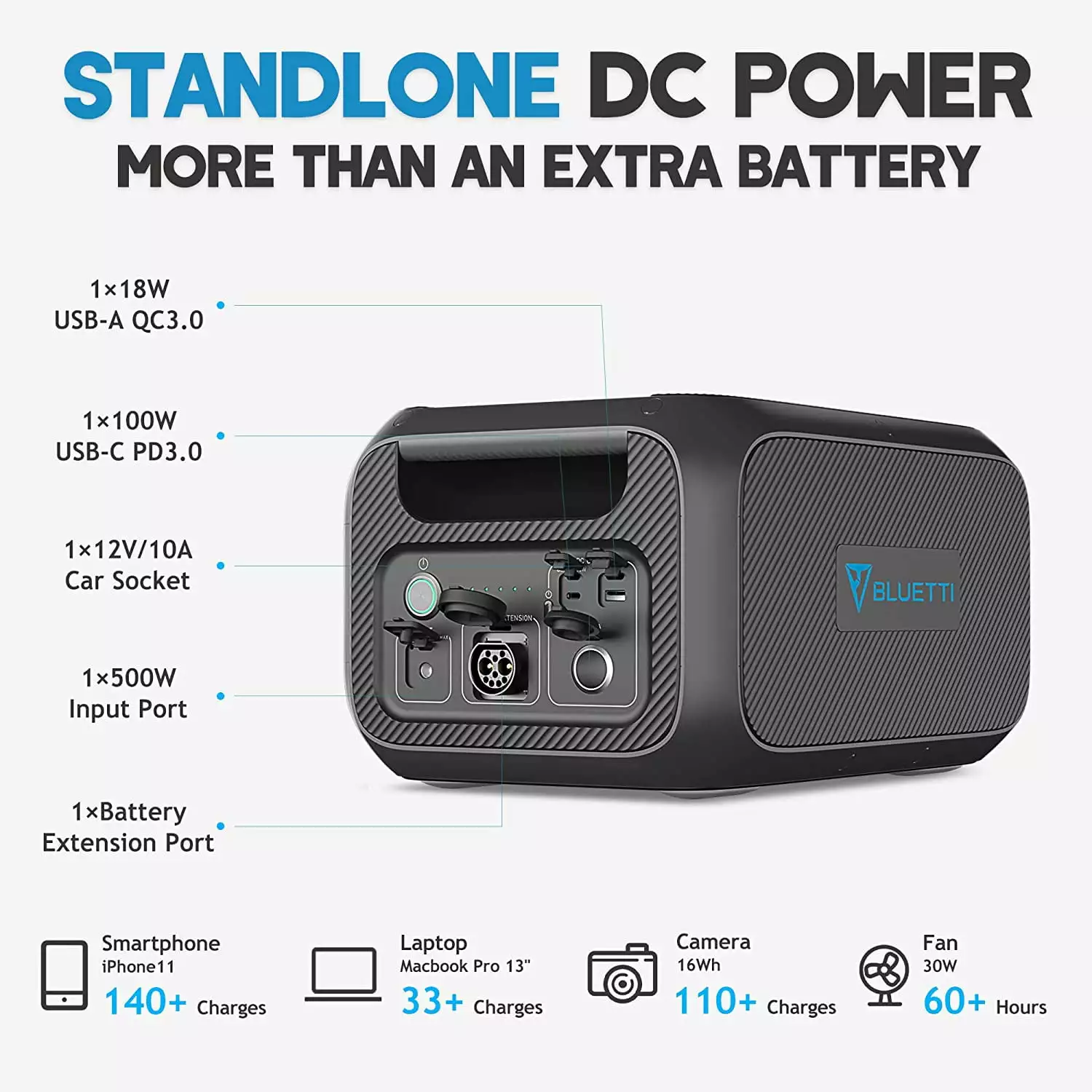 - Flexible Recharging Options- Recharge the B230 in just 5 hours using up to 500W solar or AC input. with support for car and lead-acid battery charging.