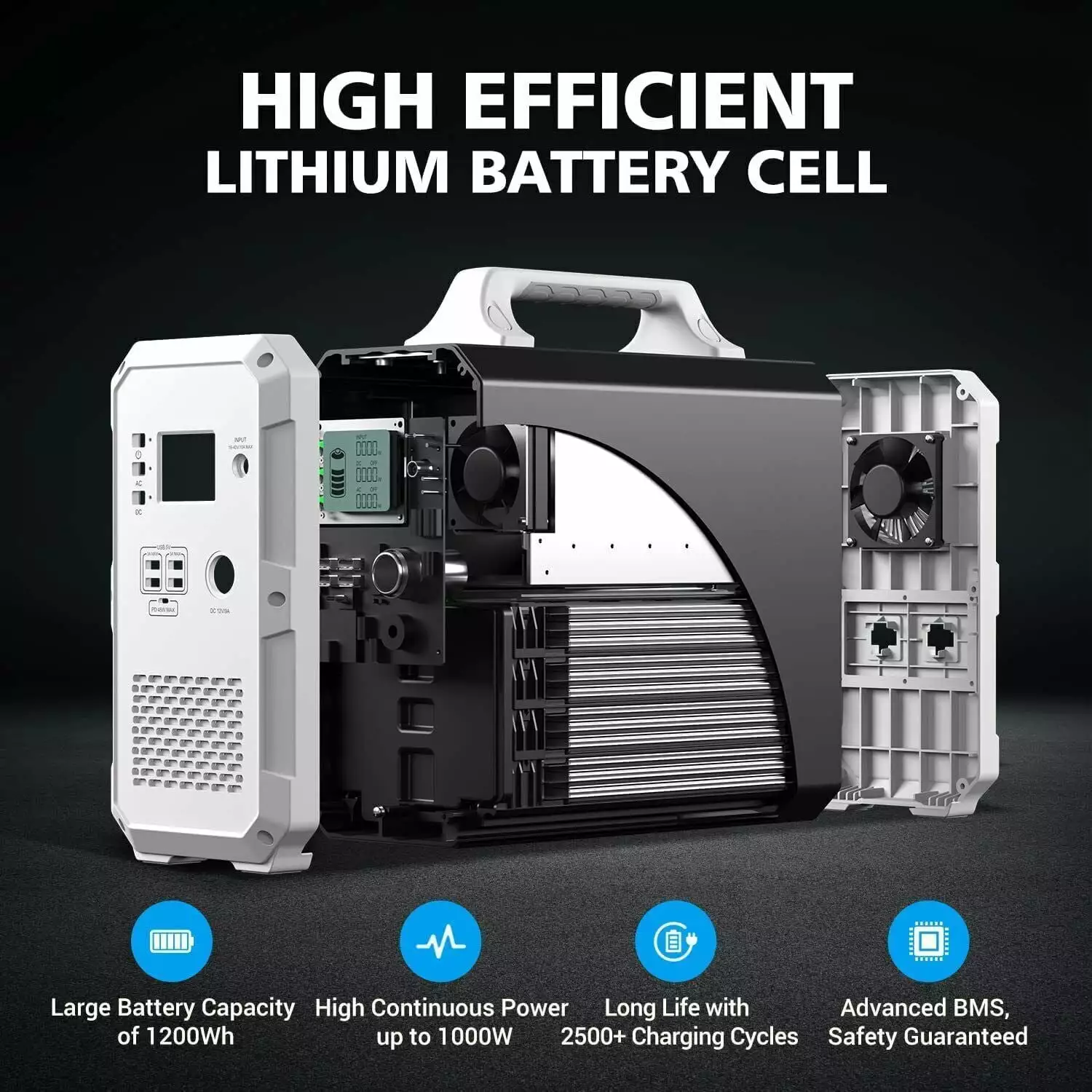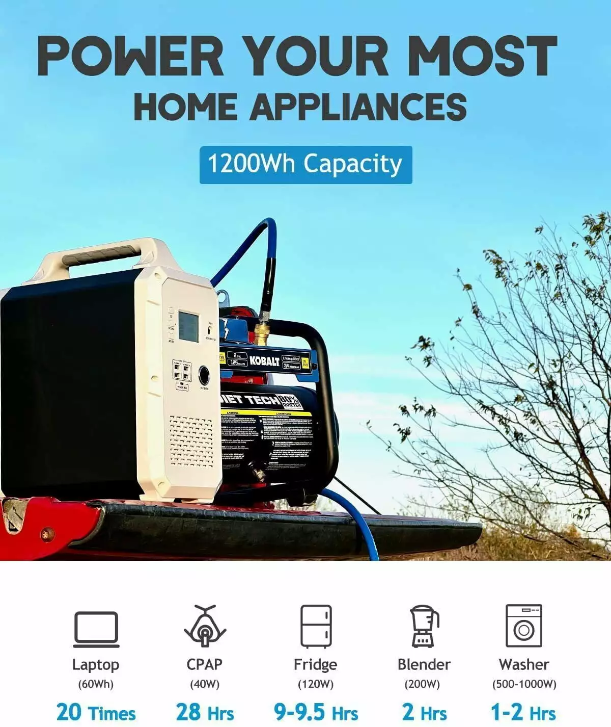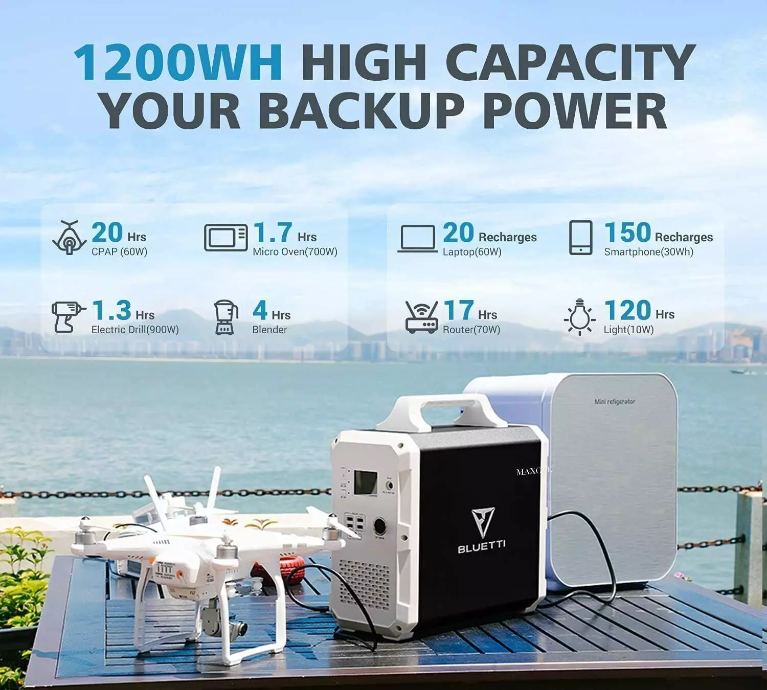 - [1200Wh High Capacity] – With a massive capacity of 1200Wh and 1000W inverter. EB120 can meet your basic power needs and high-power devices such as drill. hairdryer. blender. etc. Ideal for camping and other adventures on the road.
