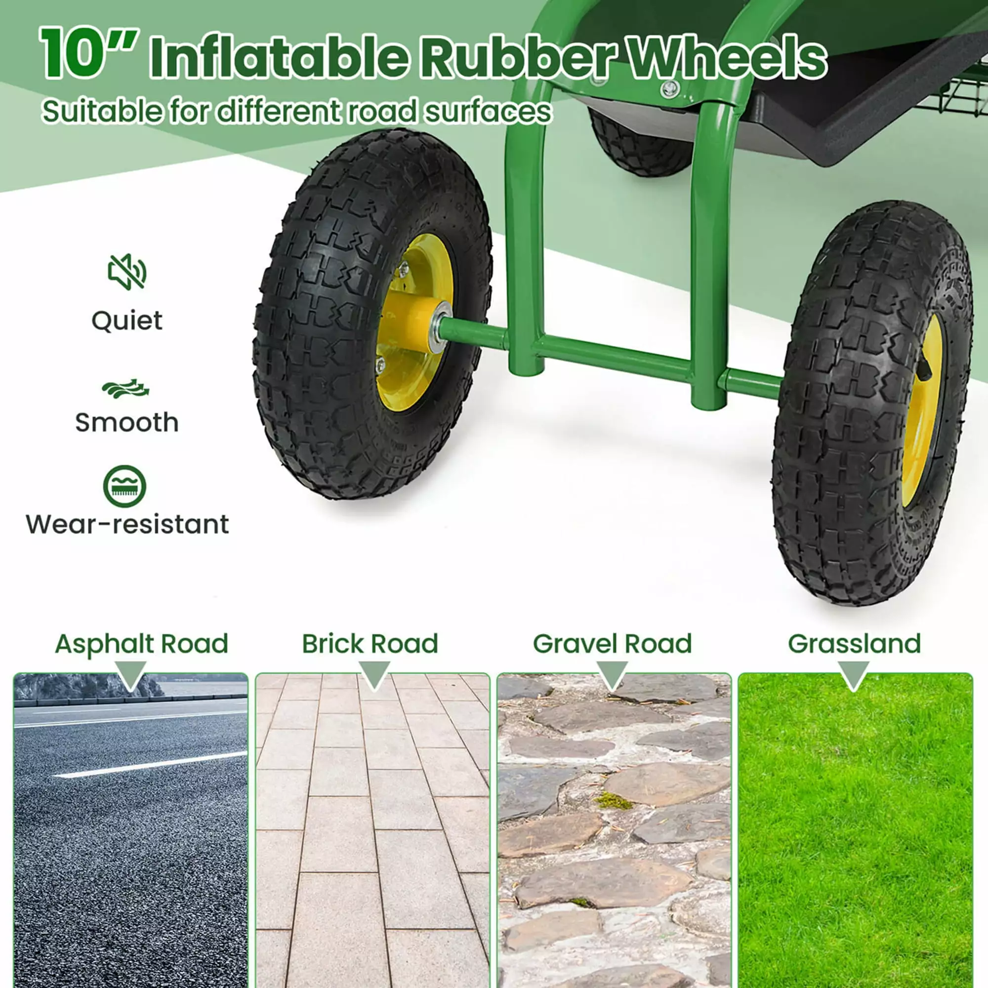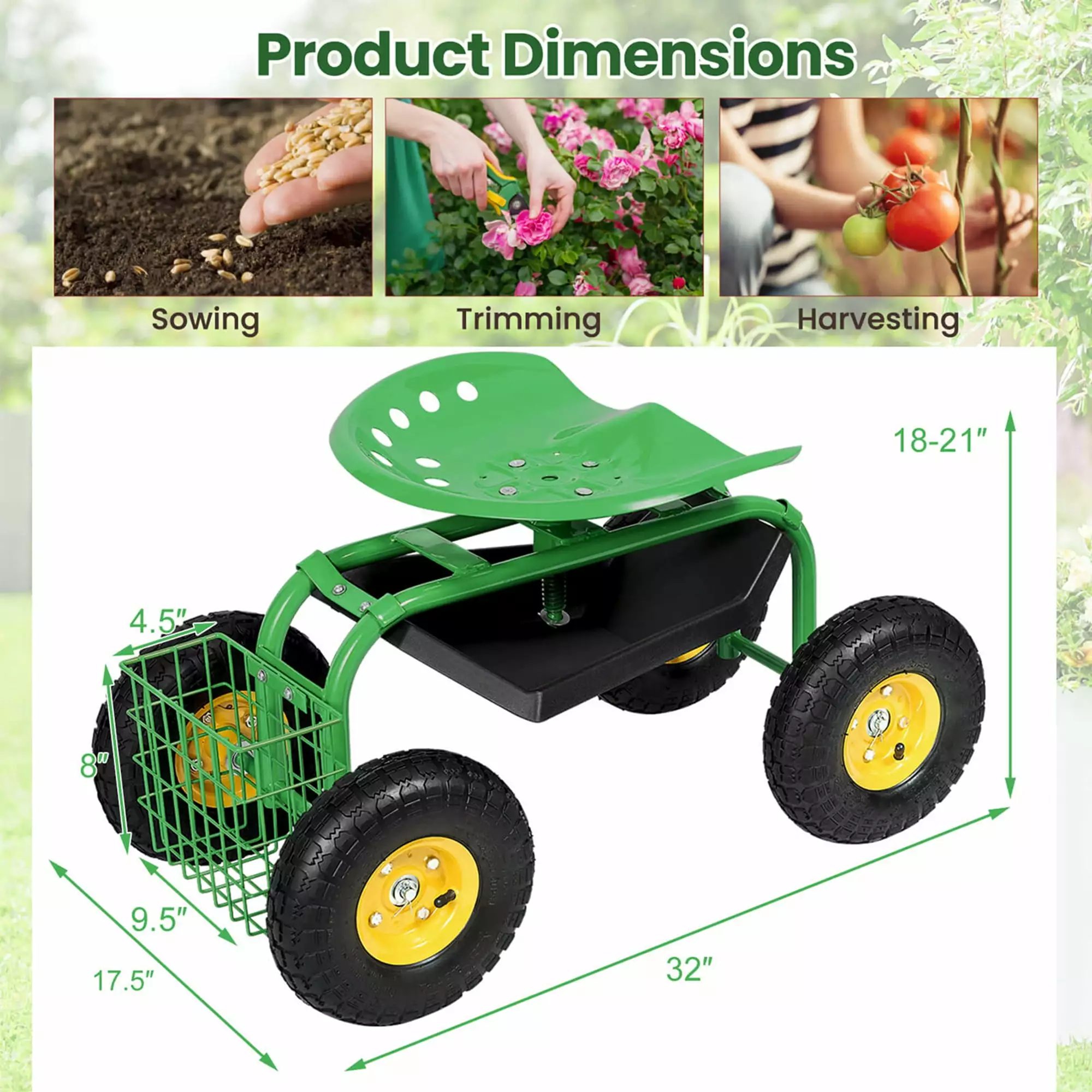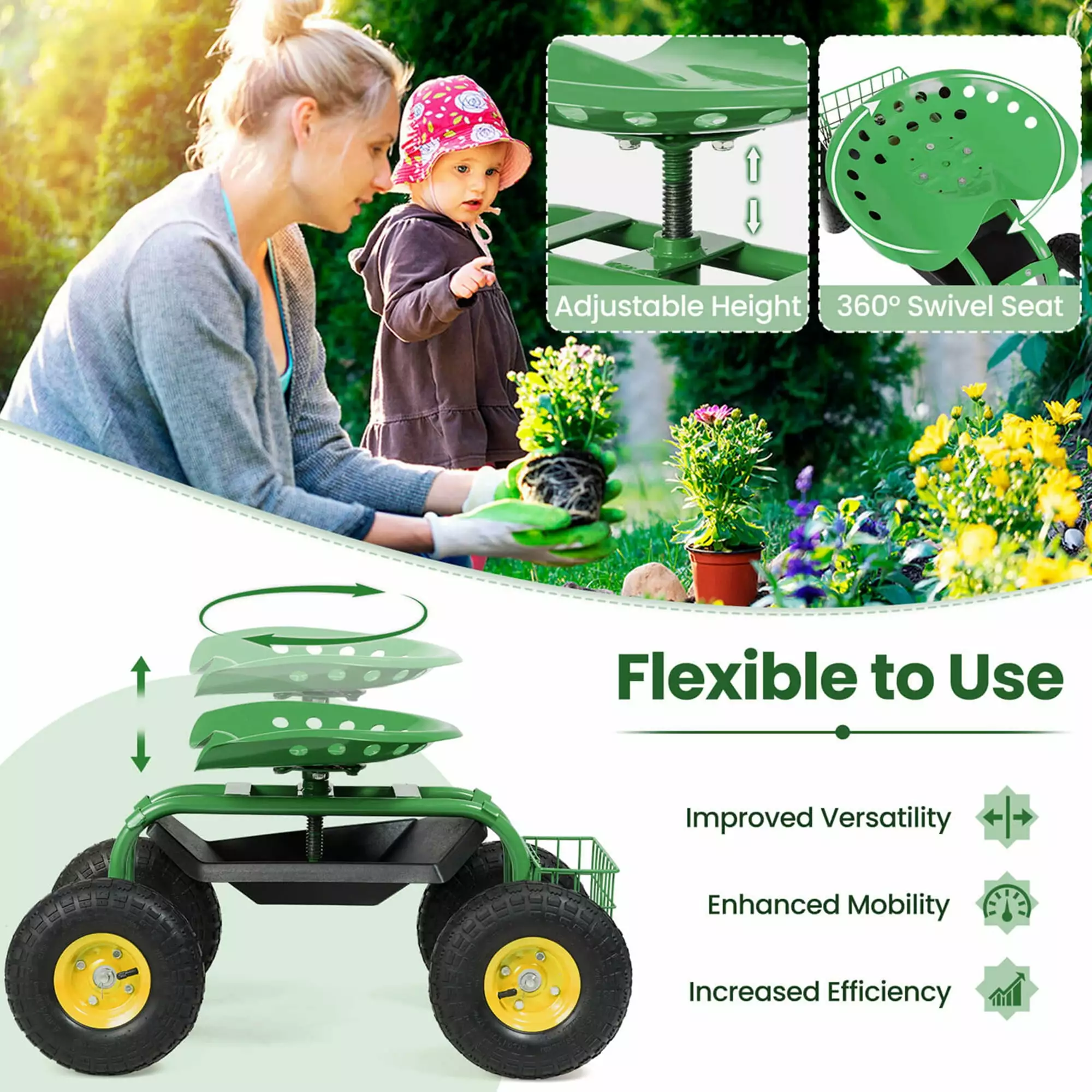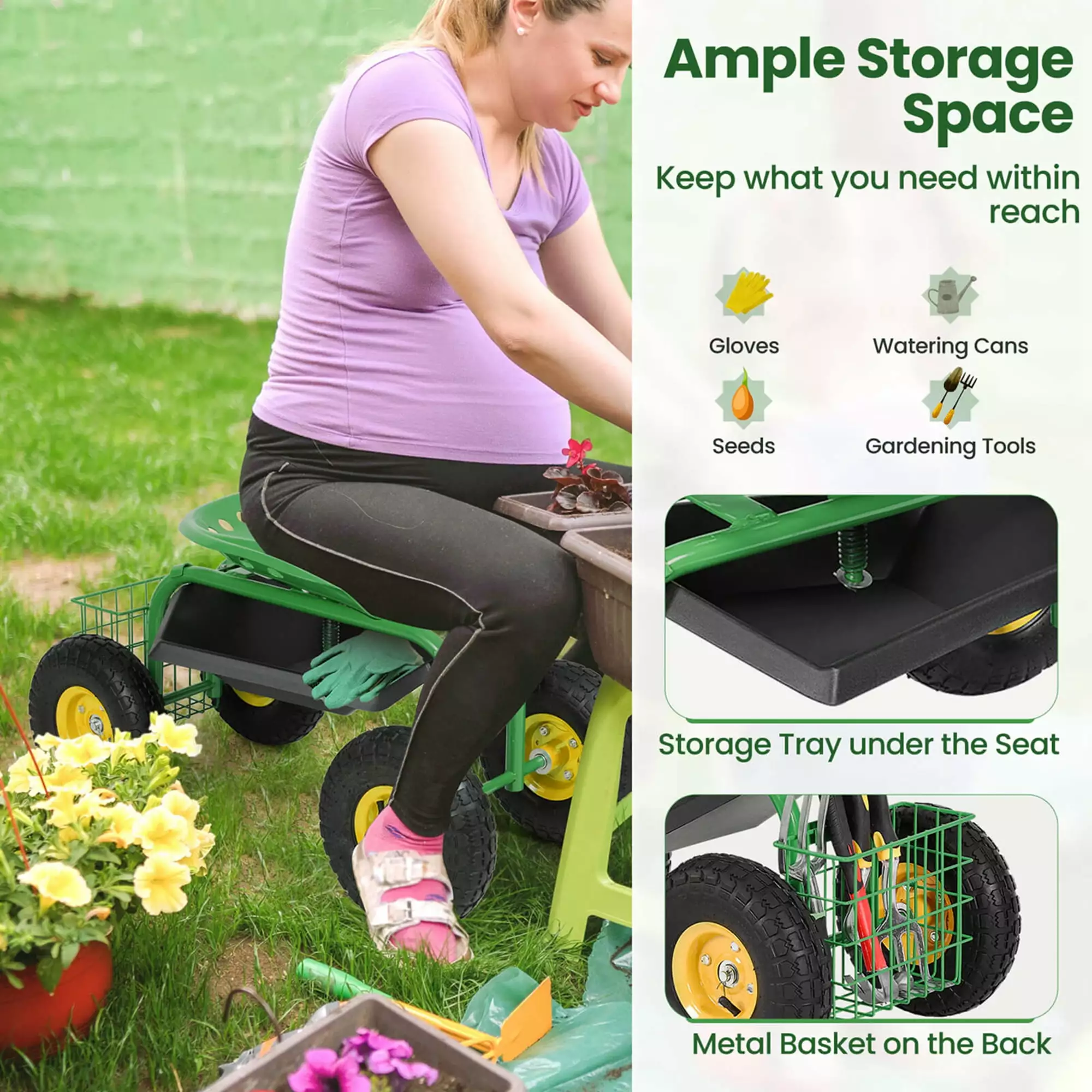 Costway Rolling Tray Gardening Planting with Work Seat Garden Cart Green