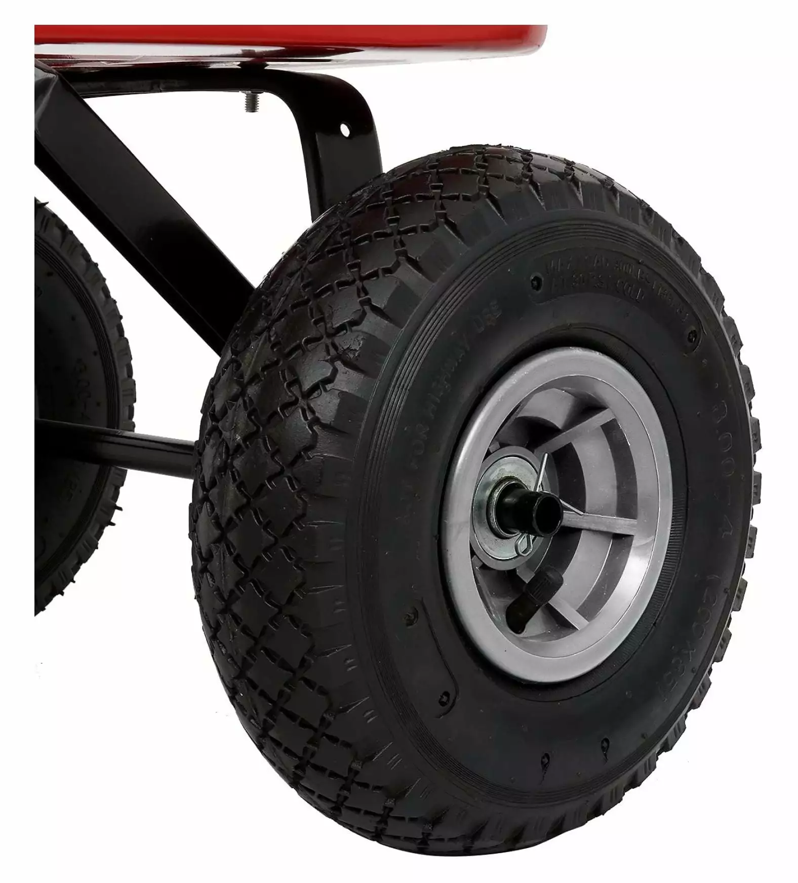 - ???Air Tires?? Equipped with 4 pneumatic tires that are resistant to wear and abrasion with a diameter of 10 inches. The tire has the function of shock absorption and noise reduction. The tread pattern of rubber tires has impact resistance. which can adapt to various road surfaces. whether it’s pavement or grass.