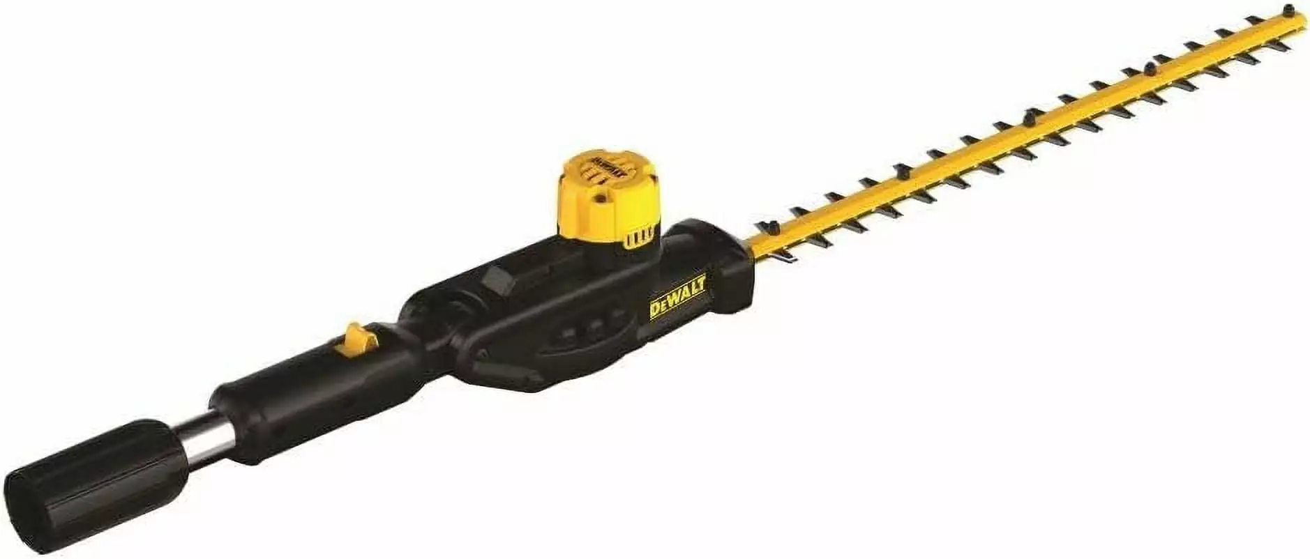 The Pole Hedge Trimmer Head is compatible with the 20V MAX Pole Hedge Trimmer DCPH820 and 20V MAX Pole Saw DCPS620. both sold separately. The trimmer head is designed to cut through a variety of landscape overgrowth with 22 hardened steel laser-cut blades engineered for clean. fast cuts on branches up to 1 inch thick. The 7-position 180 degrees articulating head allows you to customize cutting angles for hedges of any shape and size.