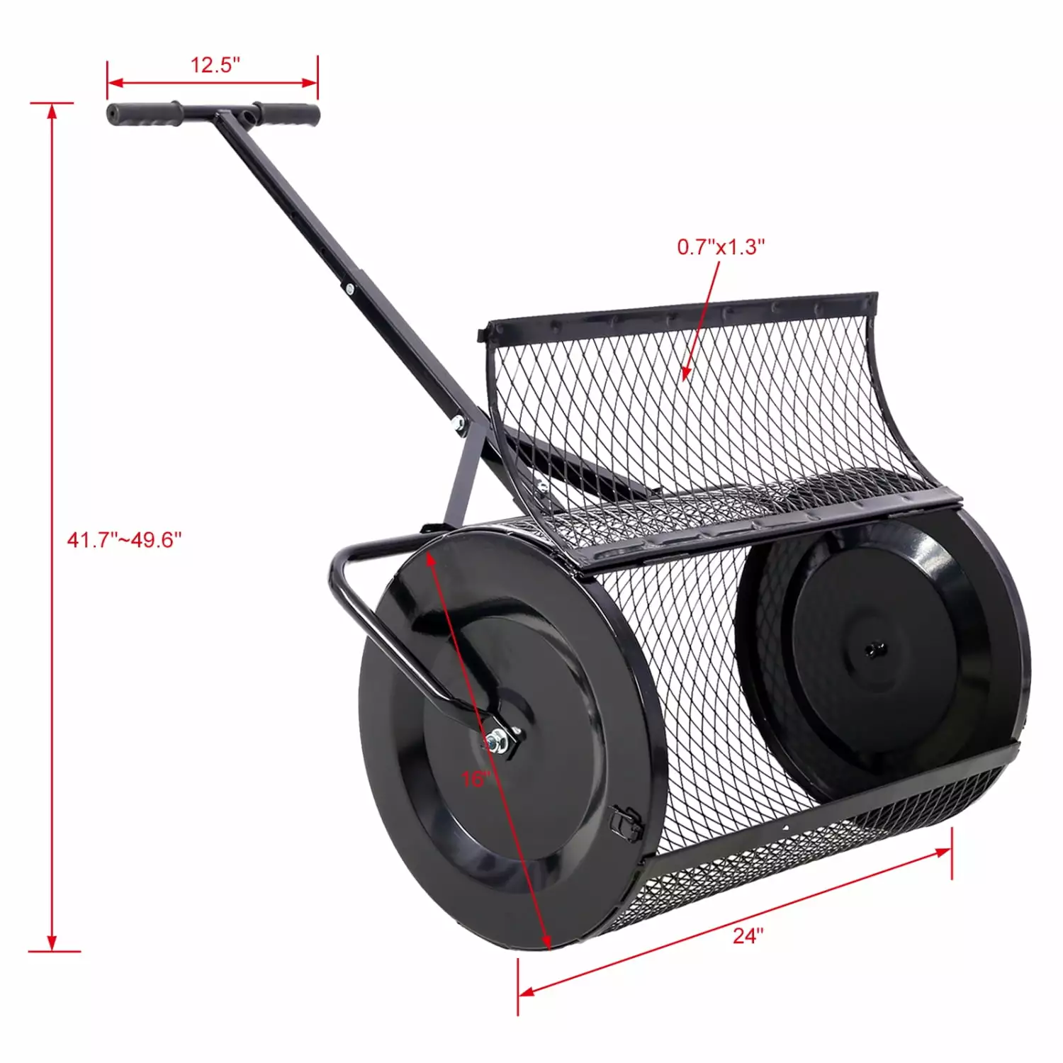 24inch Peat Moss Spreader with Metal Mesh for Compost T shaped Handle for Planting and Seeding Heavy Duty Black Lawn and Garden Care Manure Spreaders Roller