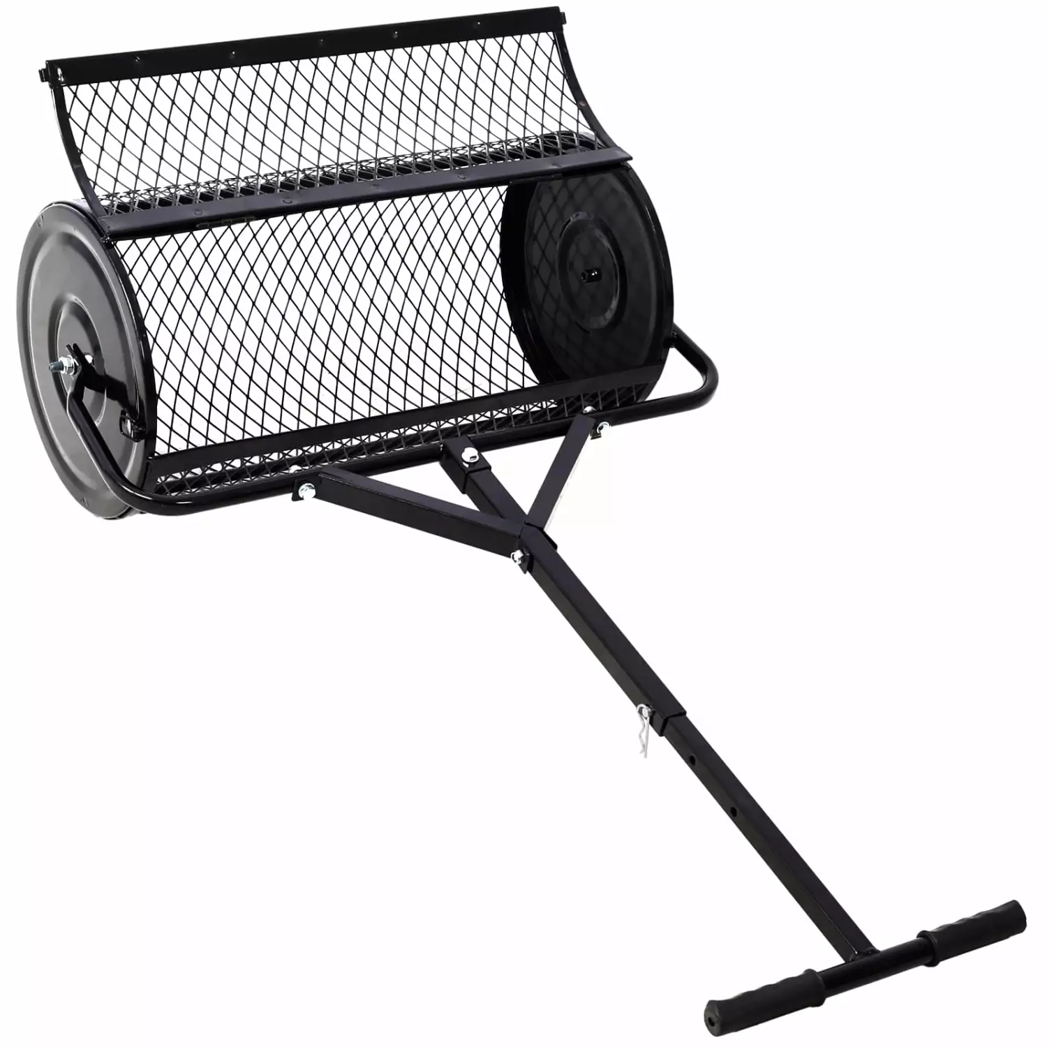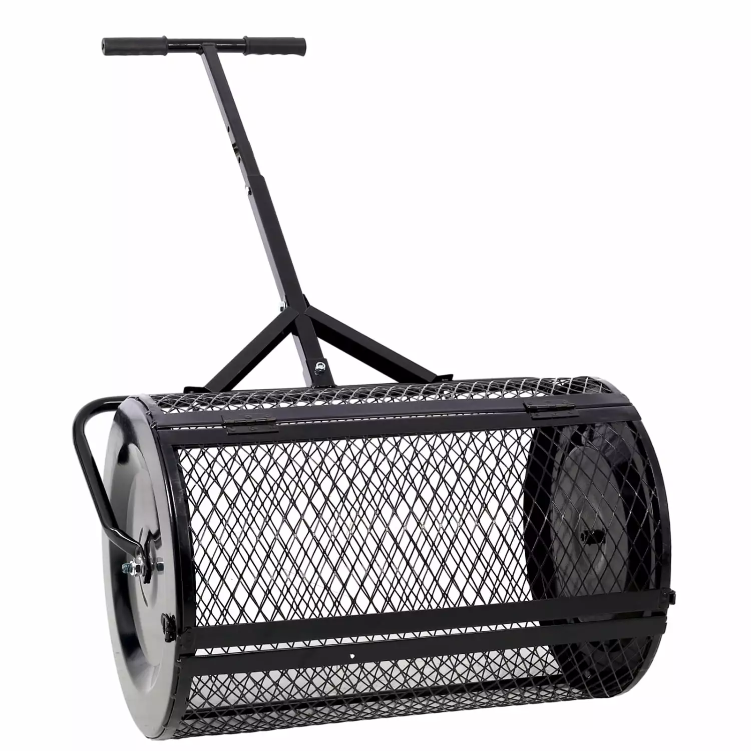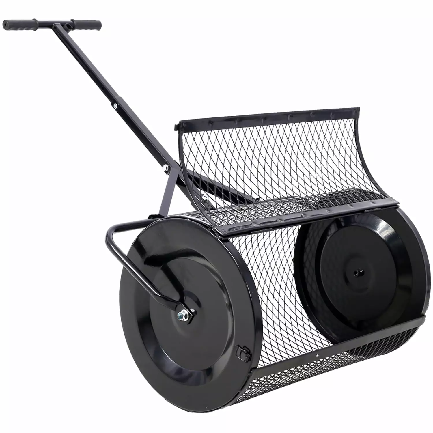 Long-lasting Heavy-duty 24-inch Black Peat Moss Spreader with Metal Mesh T-shaped Handle for Easy Planting and Seeding – Perfect for Lawn and Garden Care Manure Spreaders Roller