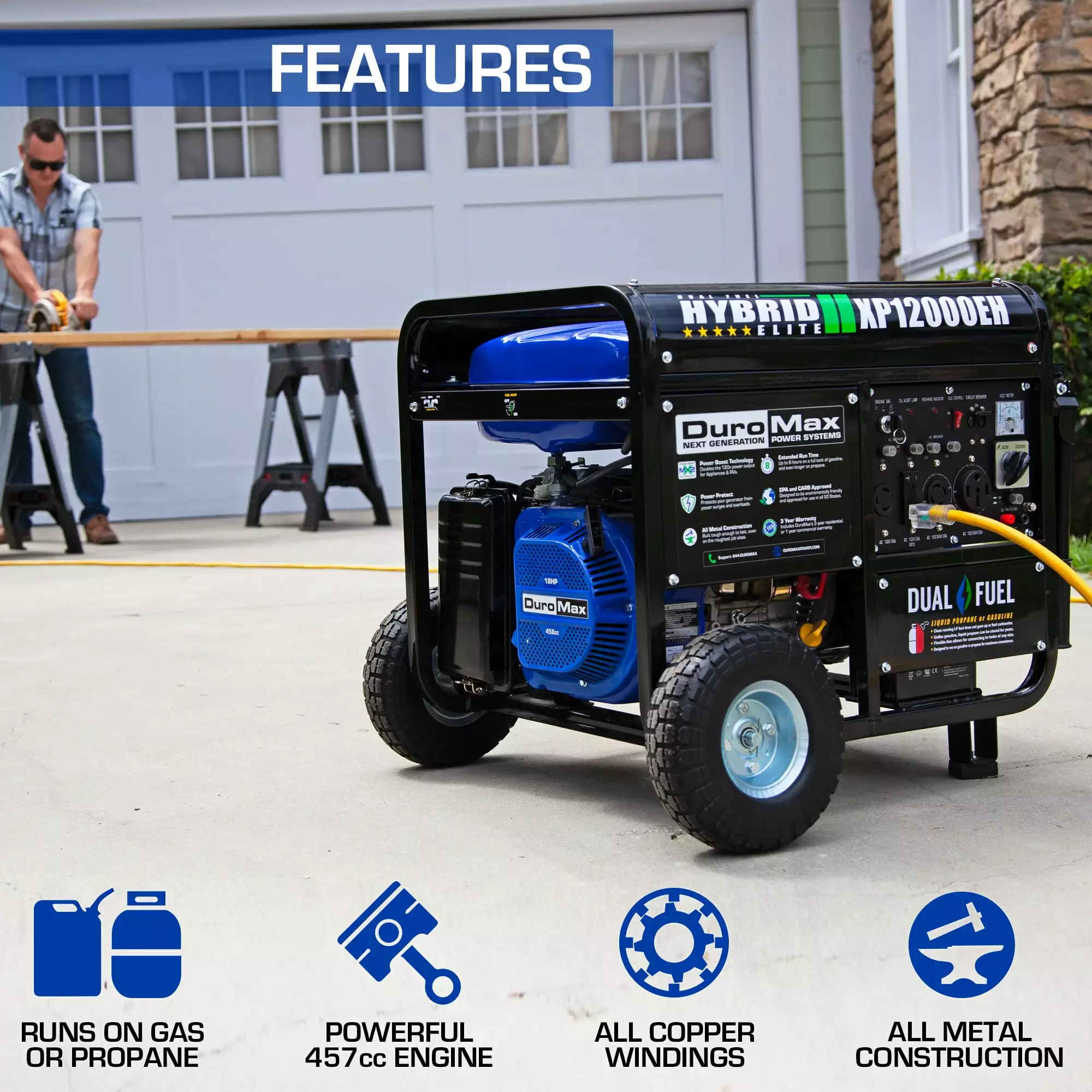 DuroMax XP12000EH 12.000 Watt Travel-friendly Dual Fuel Gas Propane Generator