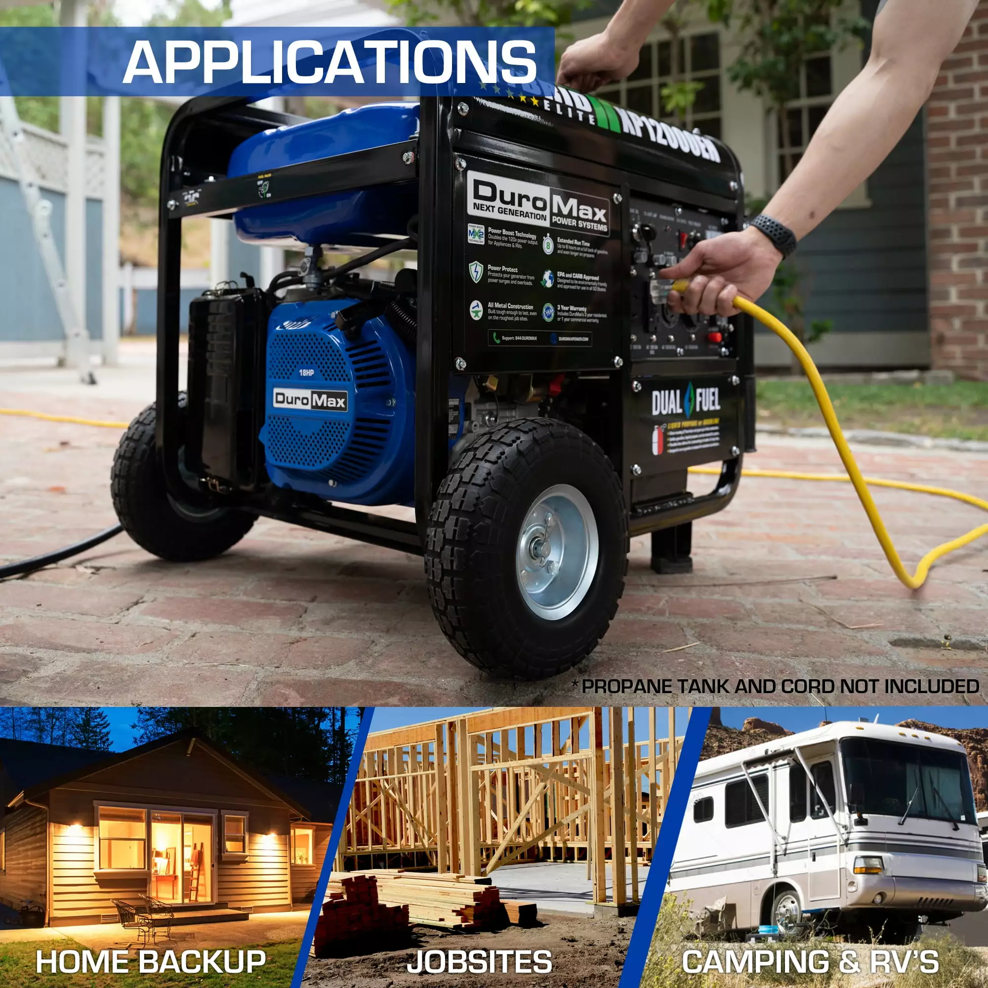 DuroMax 12000 Watt 18hp Portable Hybrid Gas Propane Generator RV Home Standby