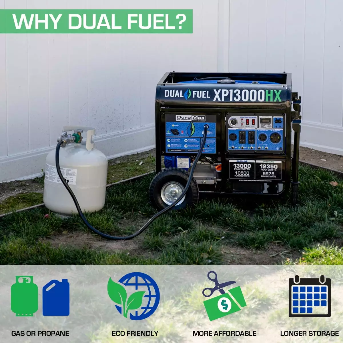 DuroMax XP13000HX 13.000 Watt Travel-friendly Dual Fuel Gas Propane CO Alert Generator