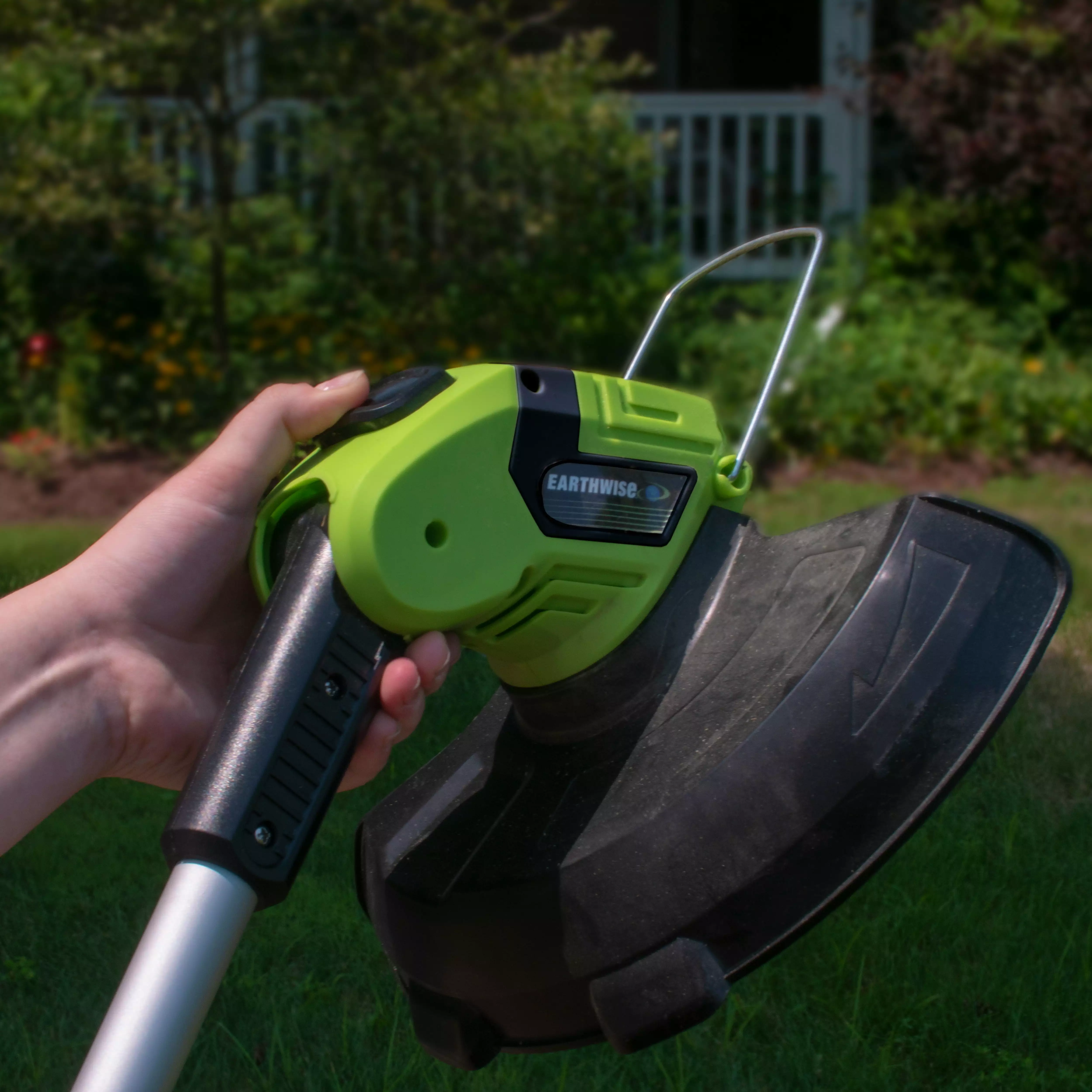 Earthwise 10 in. Cordless Electric String Trimmer has a fast charge. rechargeable 20-Volt. 2.0 Amp lithium ion battery. delivering 9000 RPMs of power. The 4-position cutting head adjusts for any trimming and edging needs. The flip-down edge guard protects what you don’t want trimmed. leaving you with the look of a professionally maintained yard. An upper handle rotates 180-Degrees for the right. comfortable hold and control. The auxiliary handle also adjusts front to back and left to right so those hard-to-reach areas are easily managed. Telescoping shaft adjusts to your personal preference. Rubber over molded handle for comfort grip. Automatic line feed eliminates the bumping action to advance more line 2-Year Warranty. No gas. no oil. no fumes.