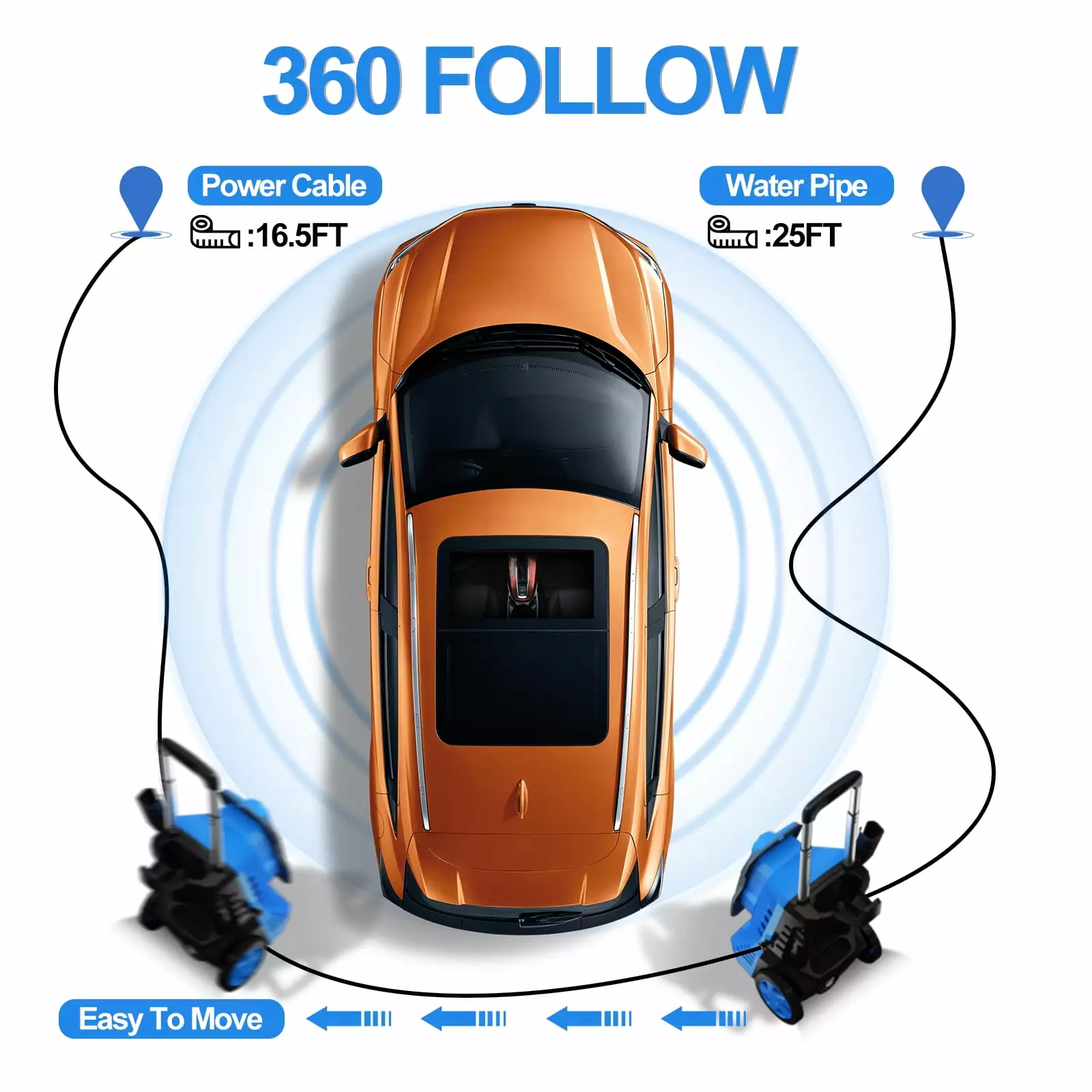 - [TSS Total Stop System] Get a total stop system feature in this portable pressure washer that automatically shuts the pump off when the trigger is not engaged. high Pressure washer is equipped with a 7.3ft power cord with inline GFCI for you to safely use on all your exterior outlets.