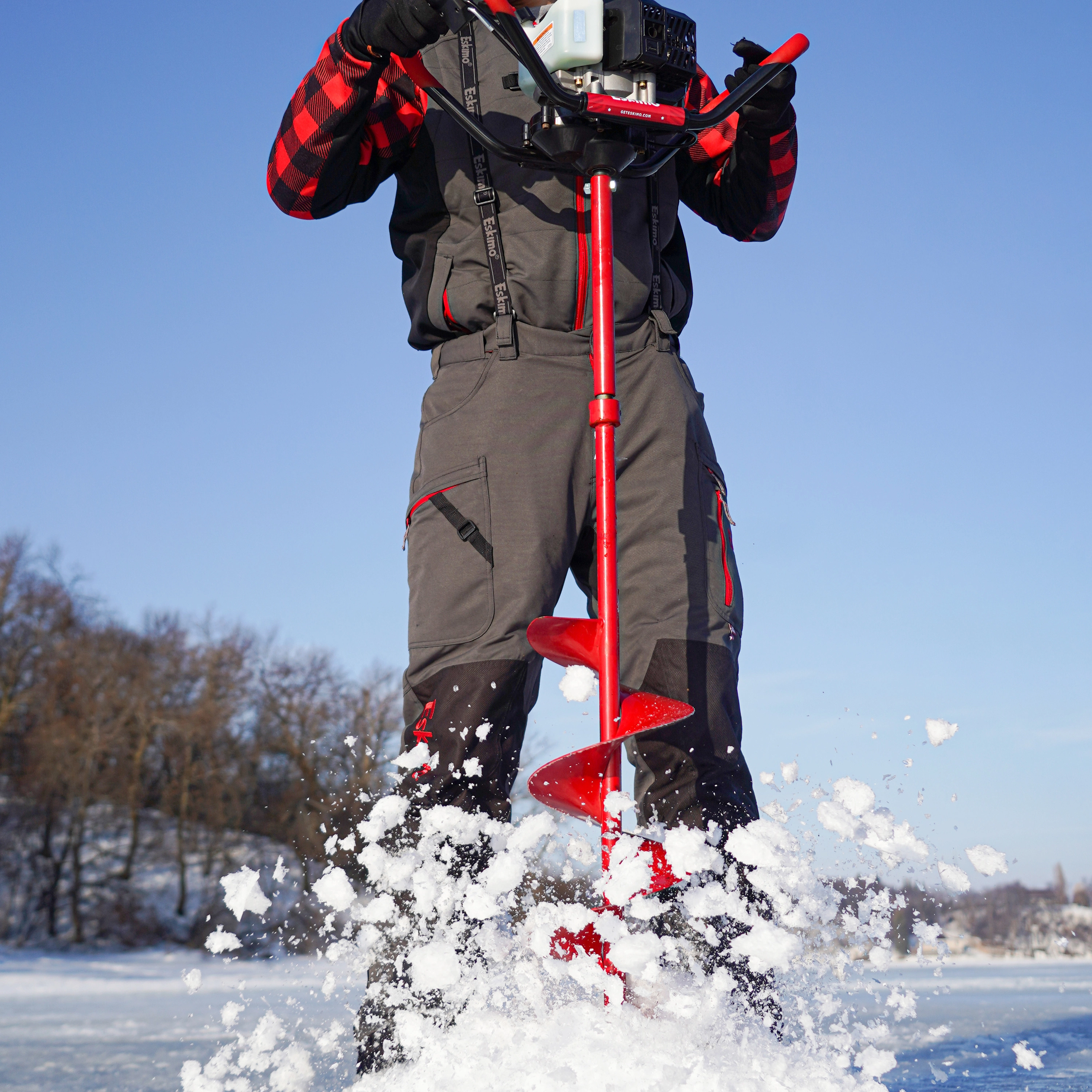 Our power auger extensions gain drilling depth in thick ice conditions. This extension is fully-welded steel and is finished with our Eskimo® red powder-coat paint.