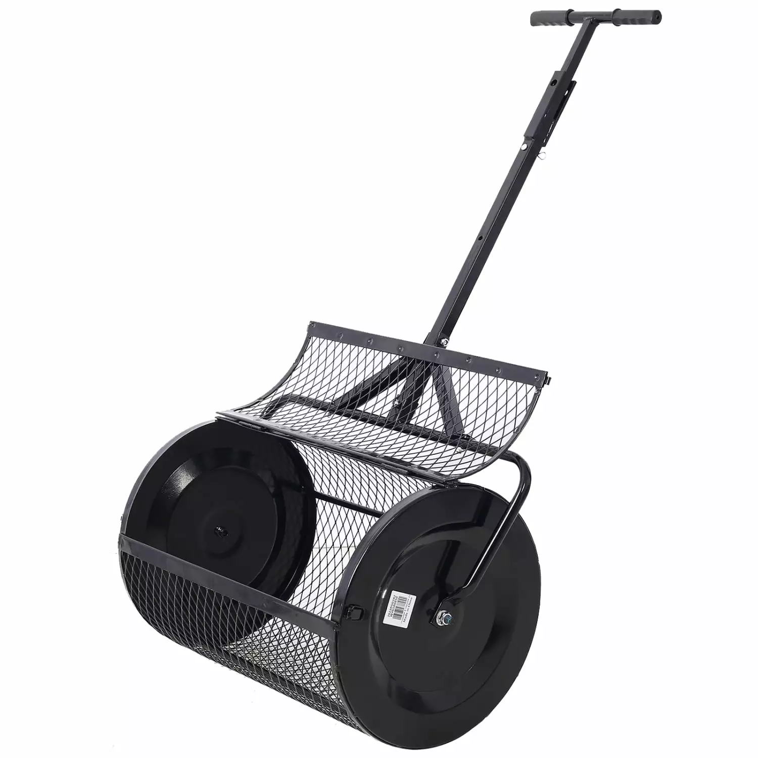 Peat Moss Spreader 36inch.Compost Spreader Metal Mesh.2 in 1 ATV and T shaped Handle for planting seeding.Lawn and Garden Care Manure Spreaders Roller