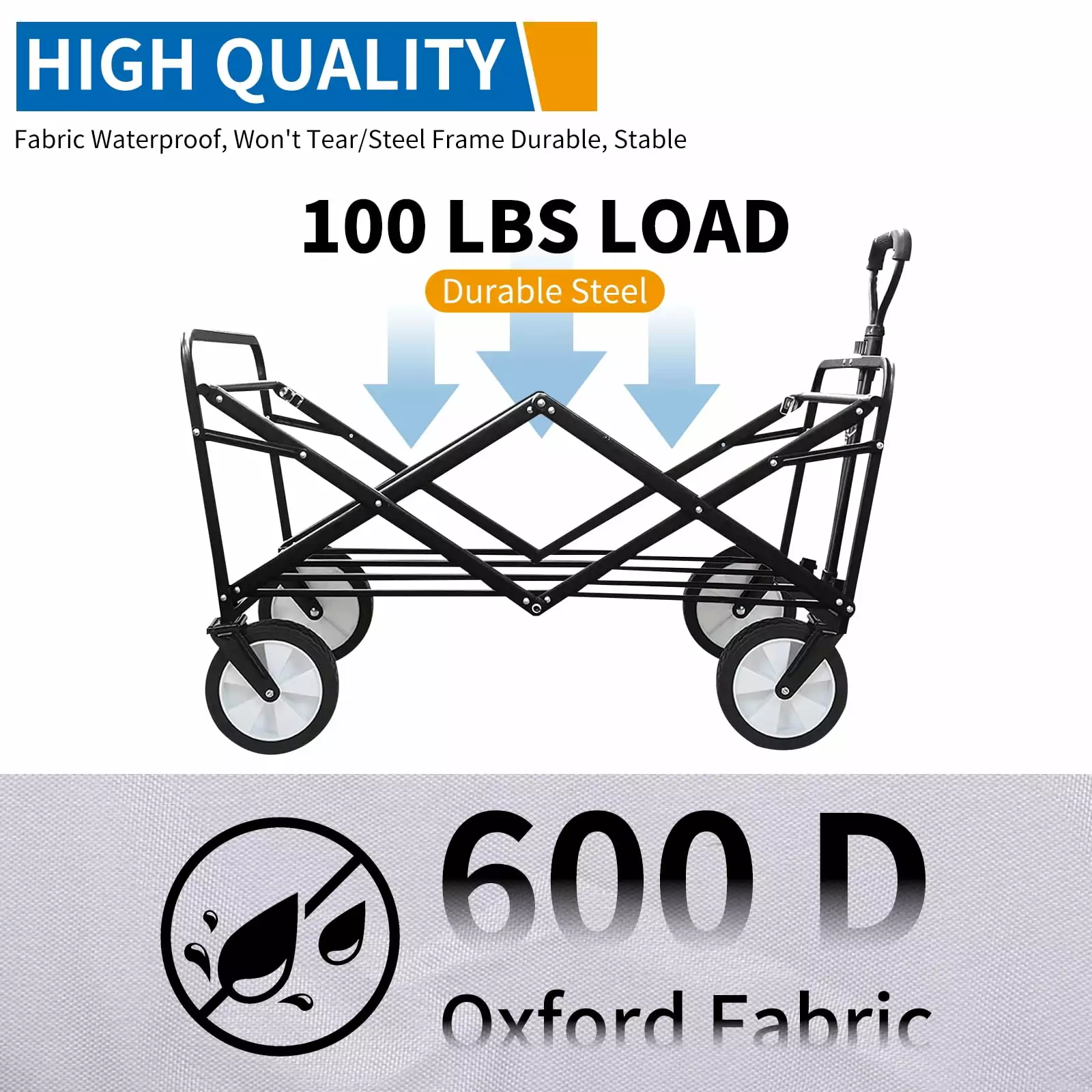 - ??Foldable Beach Wagon??Collapsible wagon features a sturdy and durable frame construction. effortlessly handling heavy loads of up to 150 pounds. The spacious interior provides ample storage capacity.