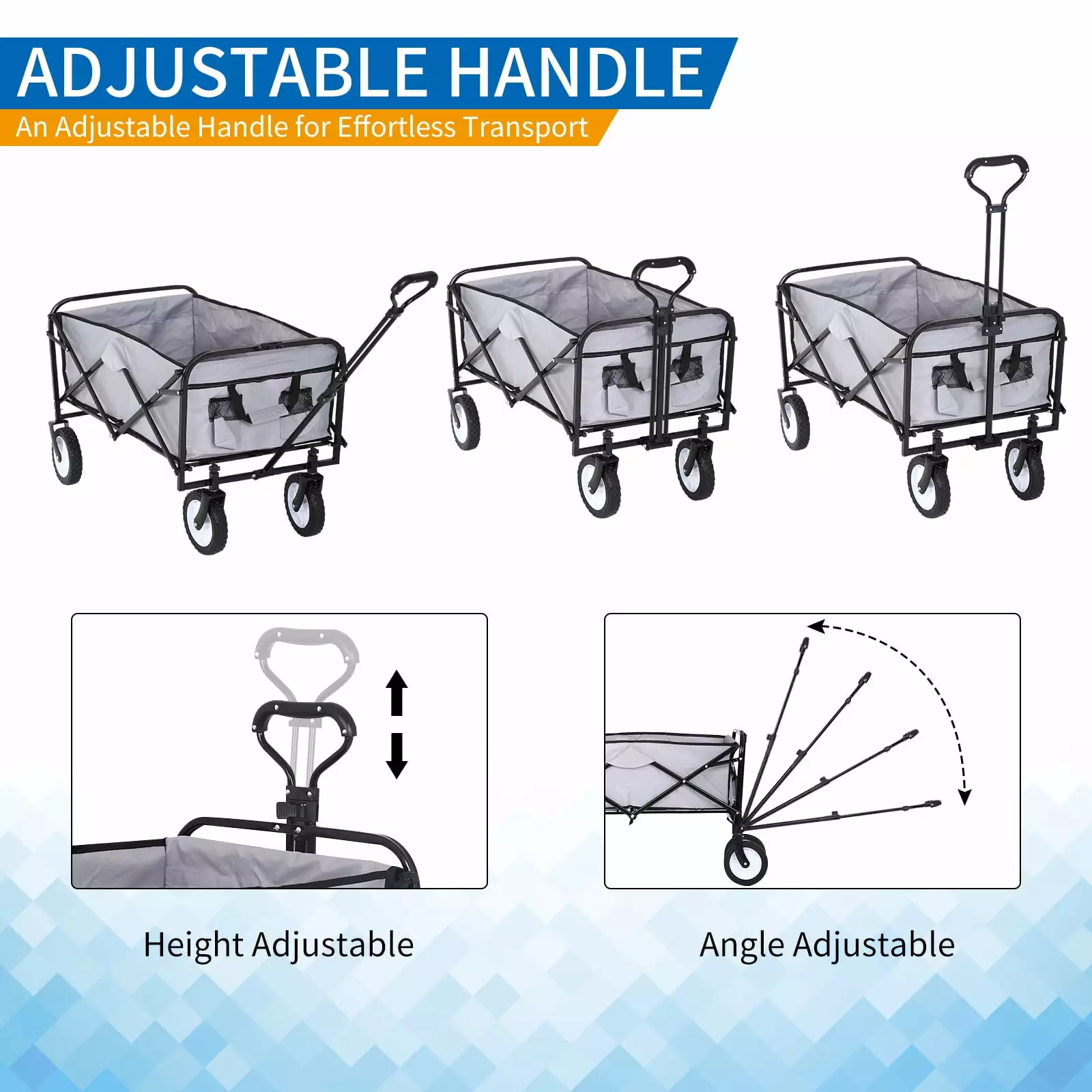 Folding Wagon Collapsible Utility Camping Park Wagon Cart with Adjustable Handle Garden Cart Folding Beach Wagon with Wheels for Camping Picnic Outdoor Event. Grey