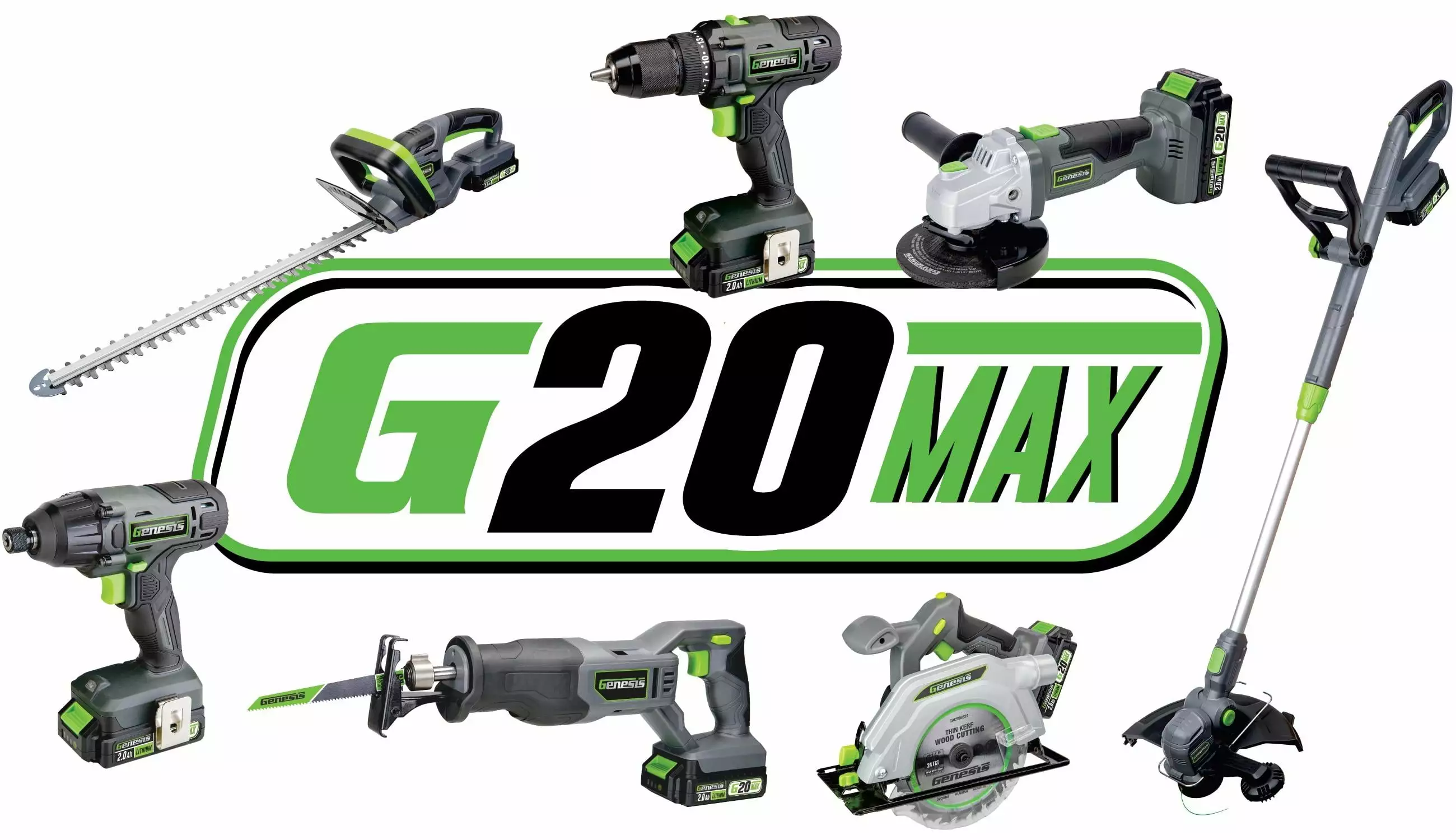 Trim and Edge your lawn with the Genesis G20Max 20V Cordless String Trimmer with 2.0Ah Battery and Charger. Quickly transforms from a string trimmer to an edger. Adjust the height and handle easily for different users and change the head angle for better cutting performance. Protect flowers and fragile landscapes with the Onboard Wire Guard. The LED fuel gauge indicates remaining battery power. Collapse the Genesis String trimmer to 3 ft for quick and easy storage. Includes: 20V 2.0Ah Battery. Quick Charger. Extra Replacement Spool. Screwdriver for Assembly. Operator’s Manual. and US Based Customer Support.