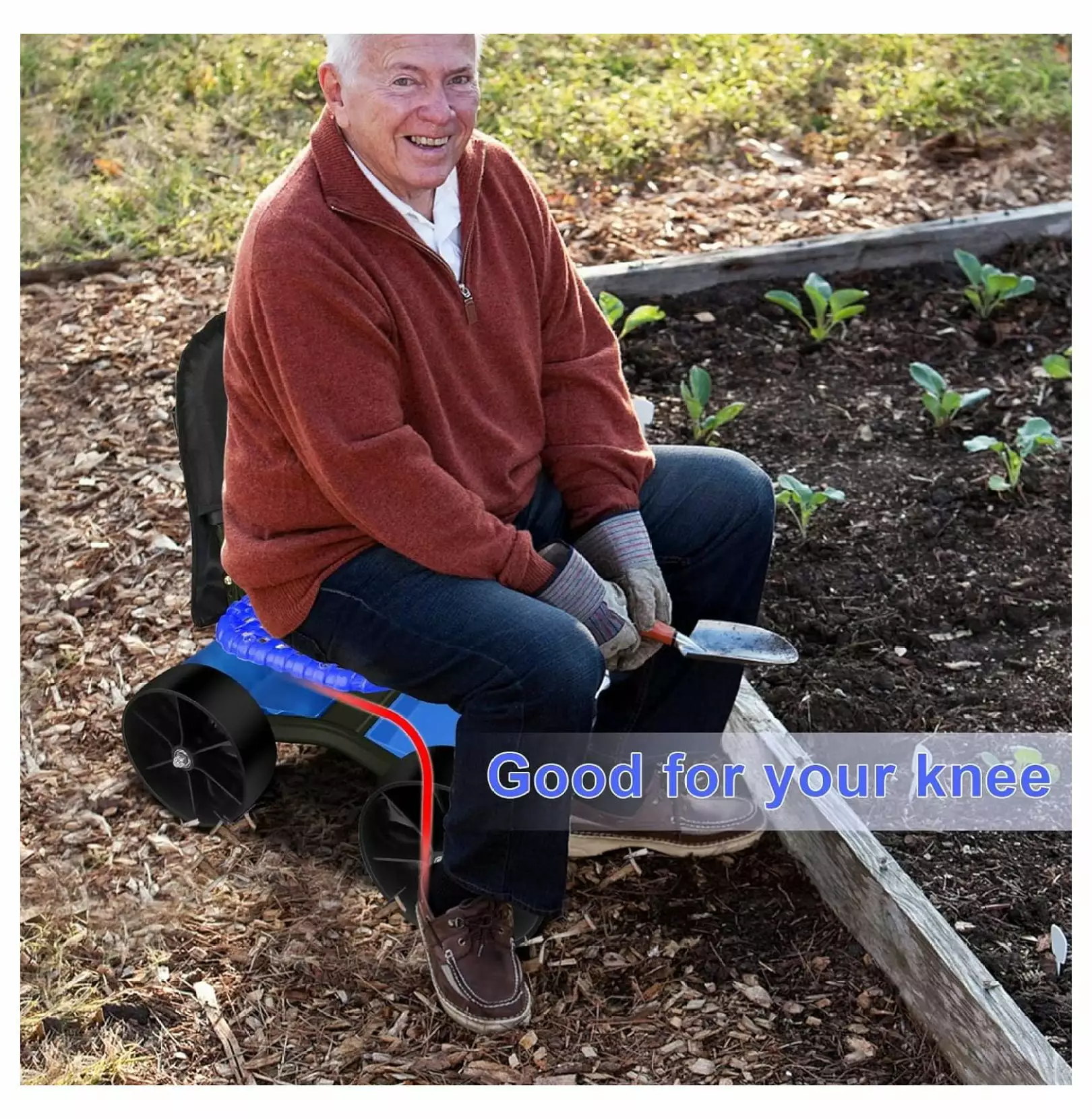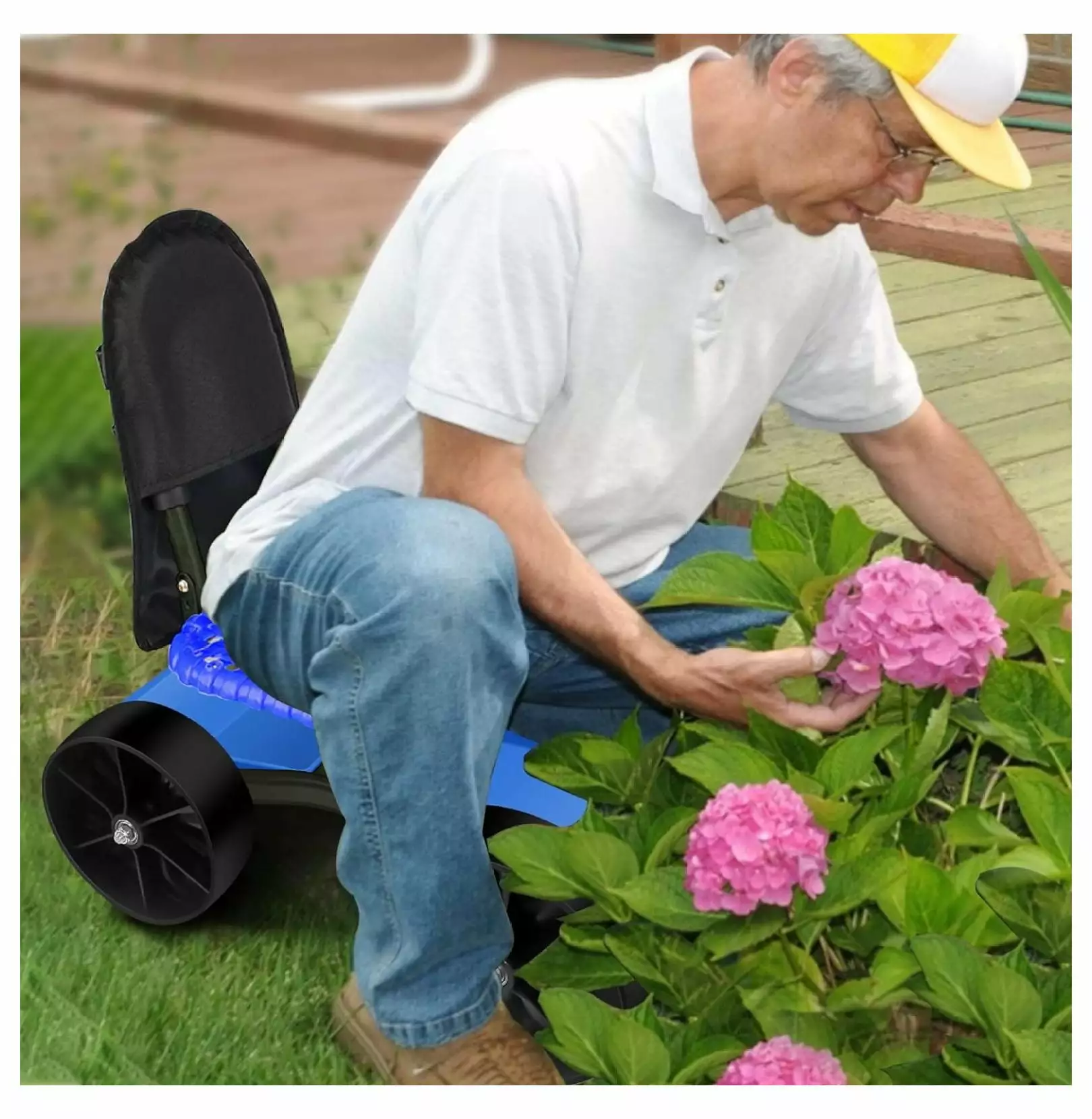 - Sturdy garden scooter with seat supports 300 LBS.