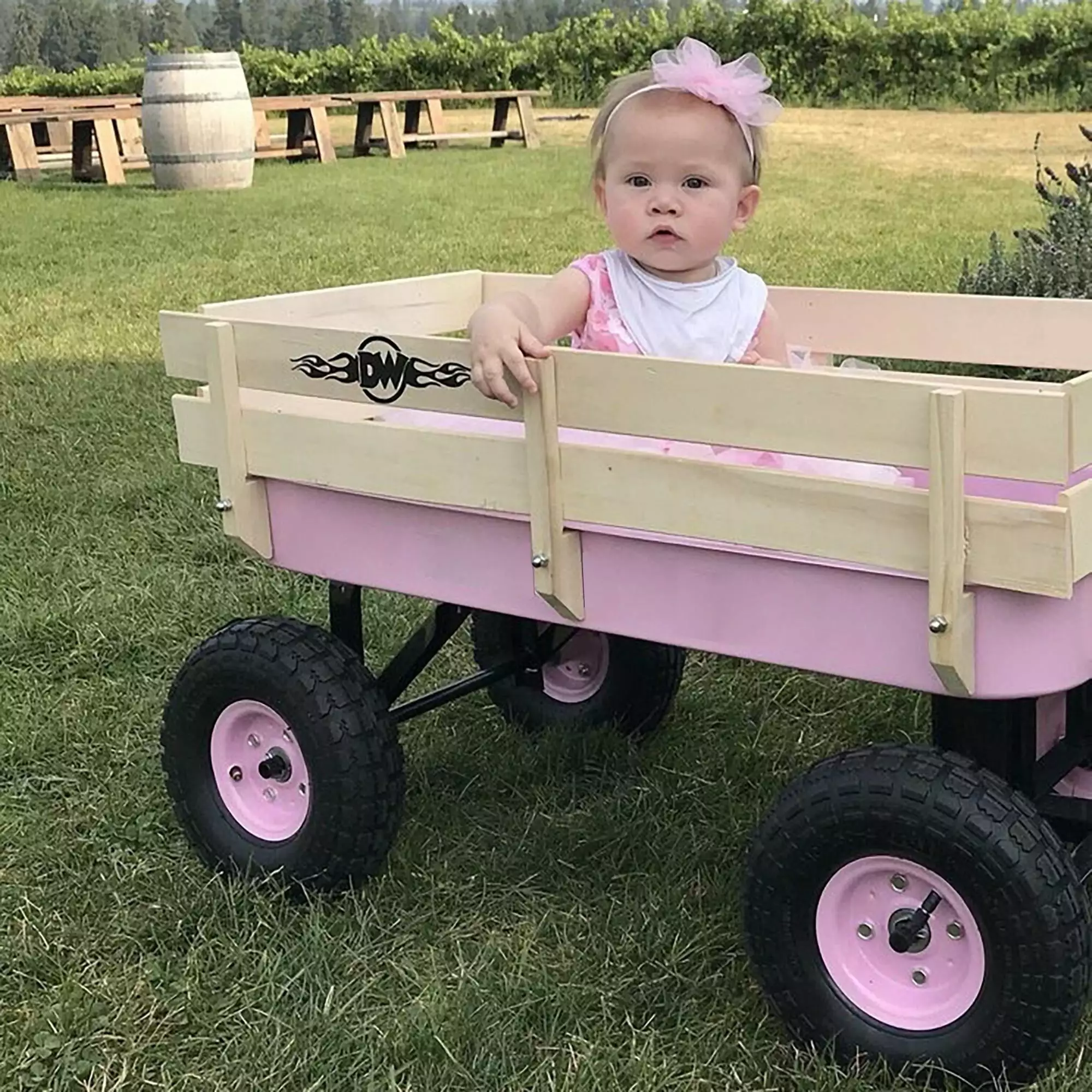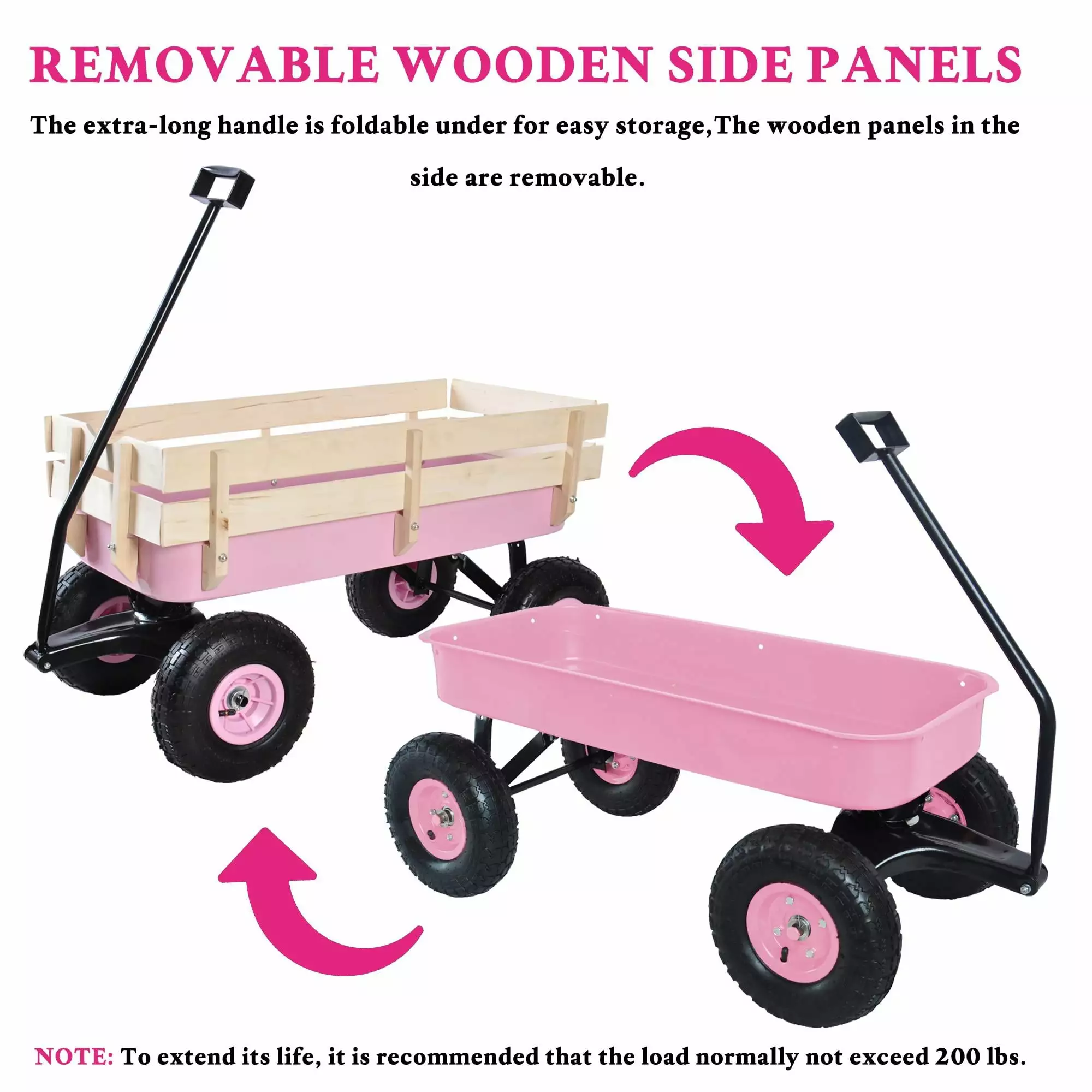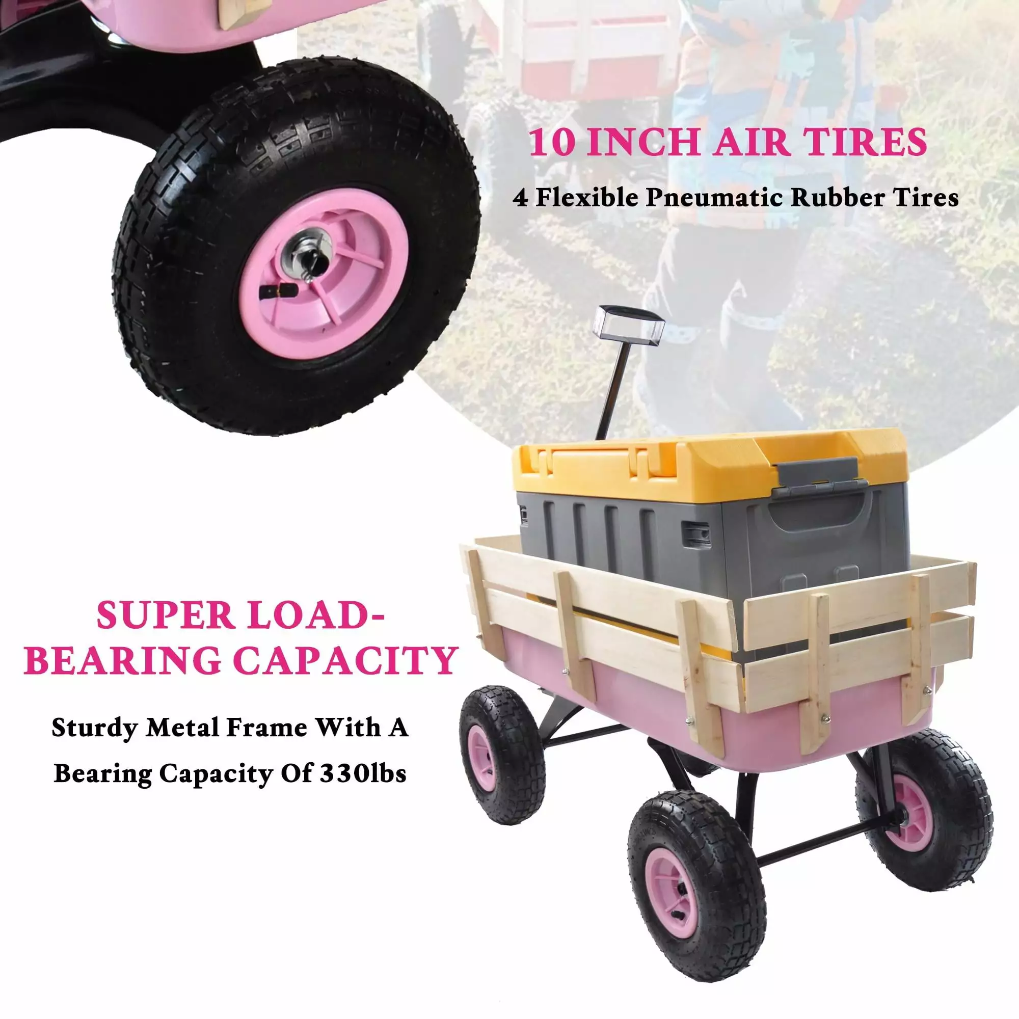 Glavbiku All Terrain Steel Outdoor Cargo Wagon.Trolley Cart with Wood Railing for Garden.39.3L.Pink