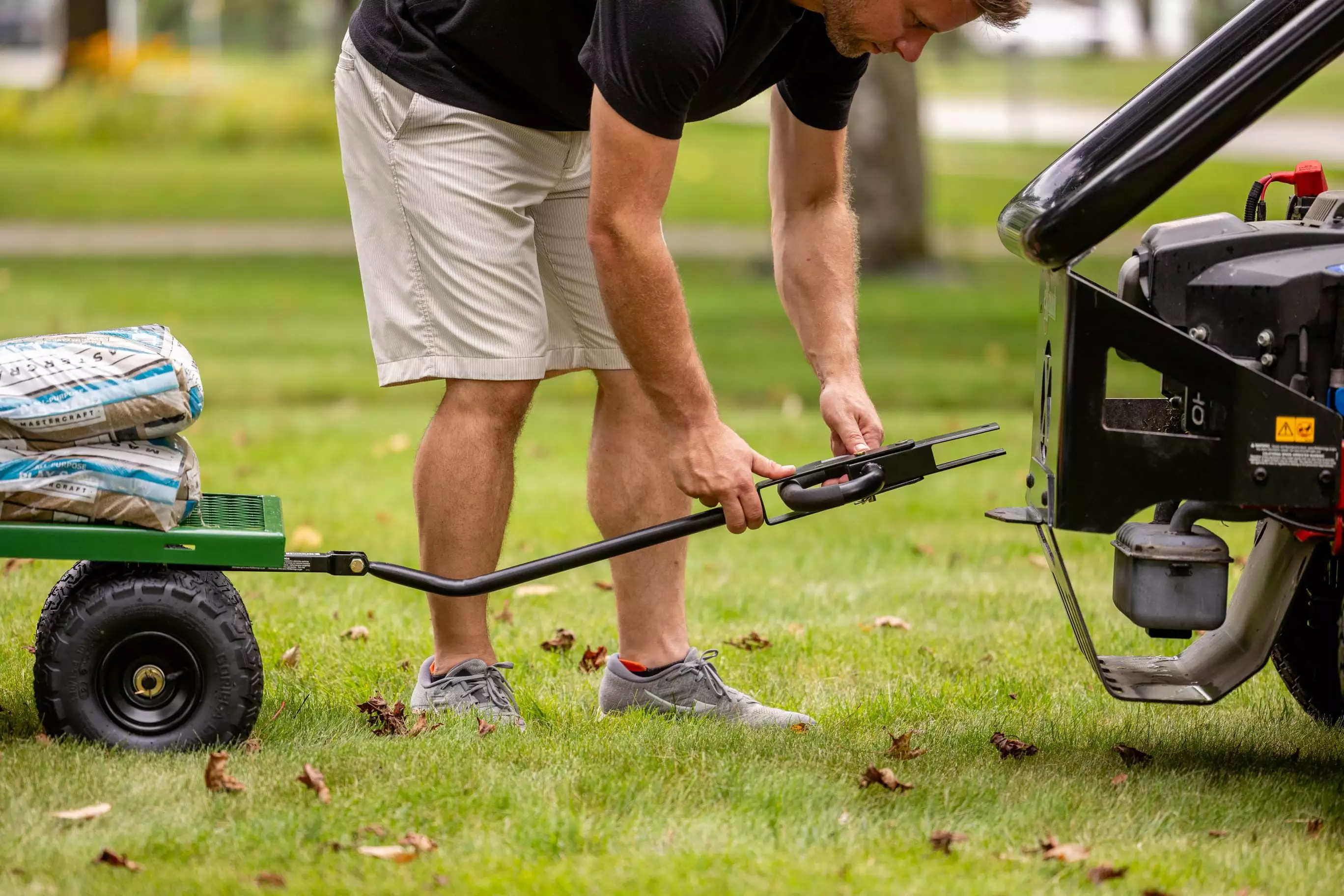 - Gorilla Carts’ patented 2-in-1 convertible handle can be pulled by hand or towed behind a tractor/ATV