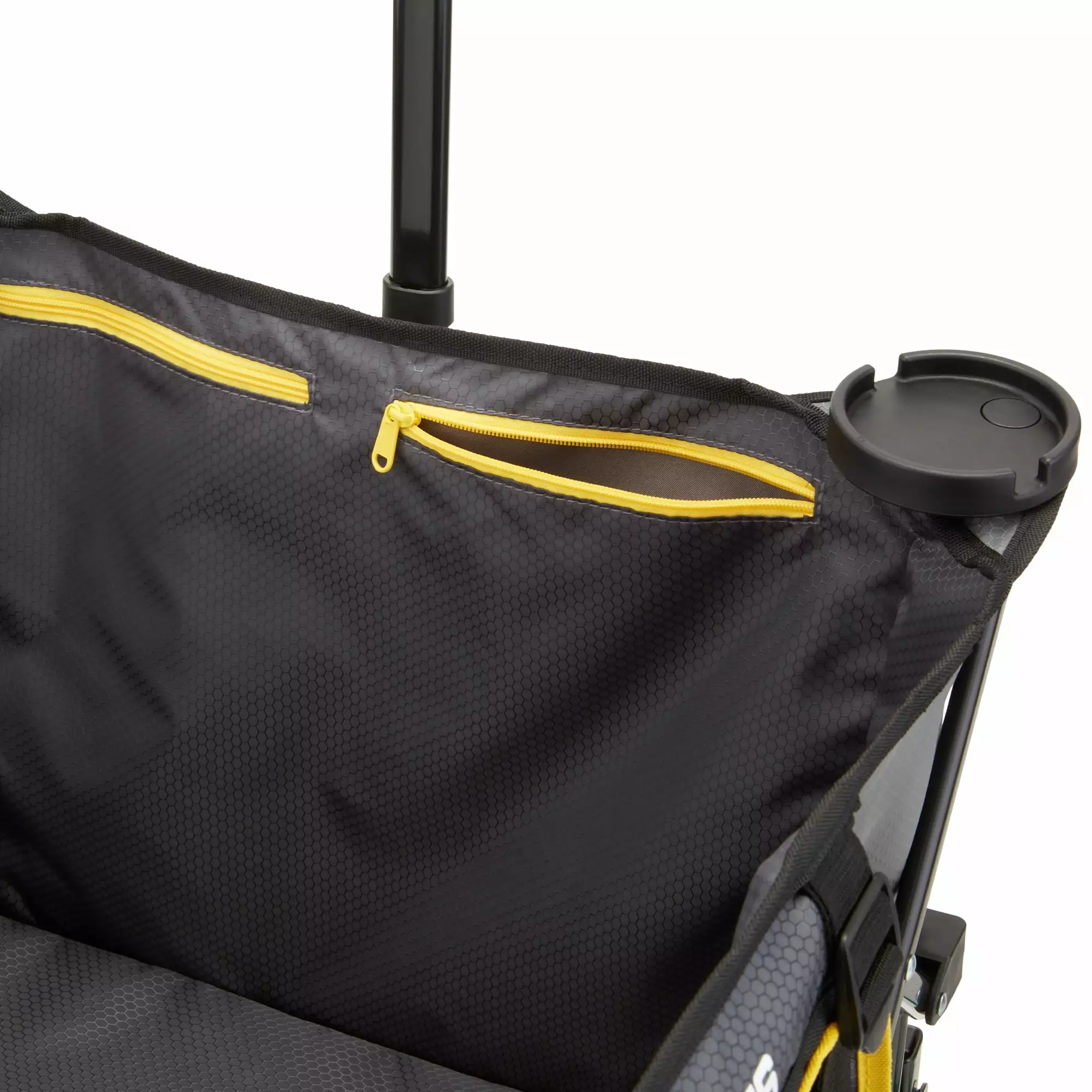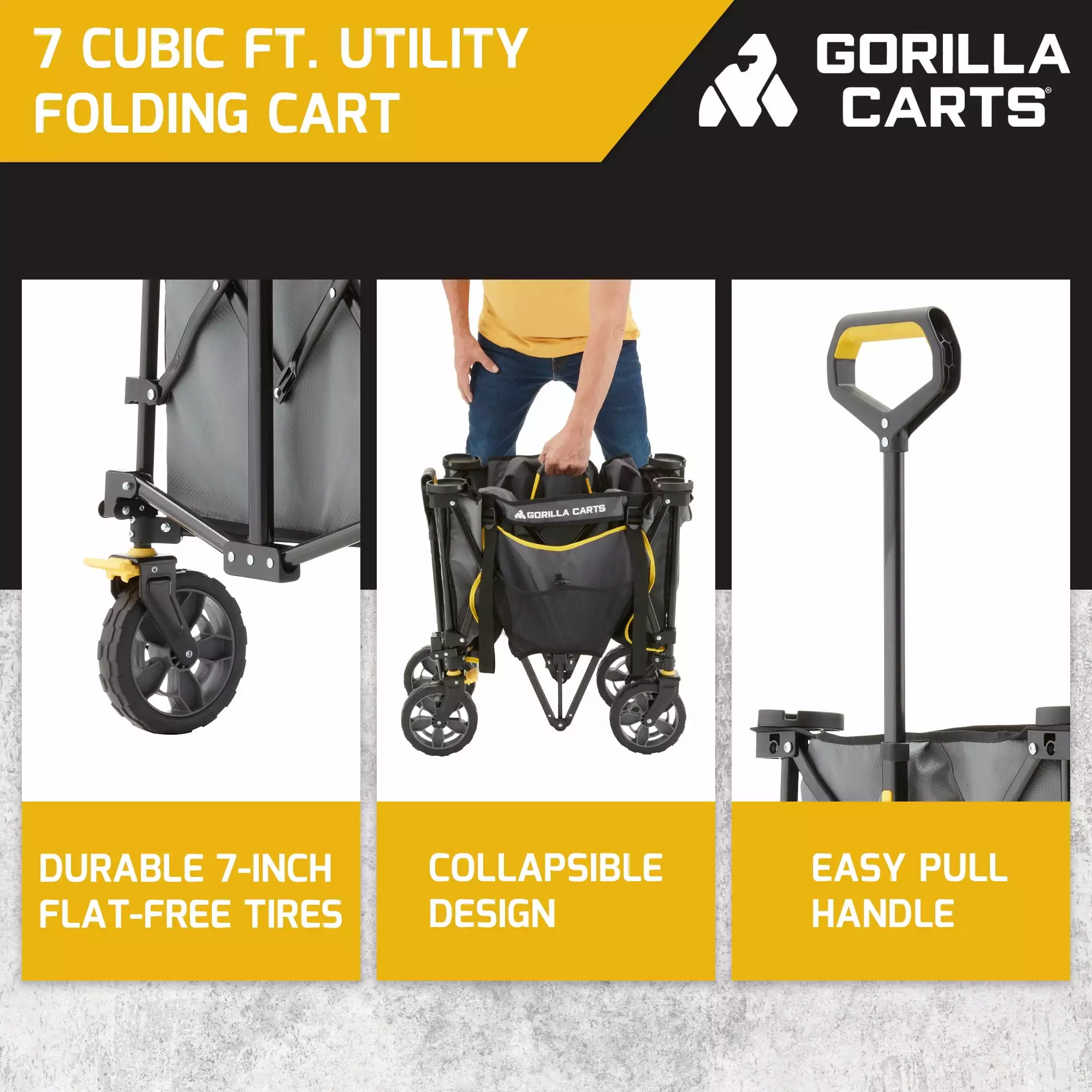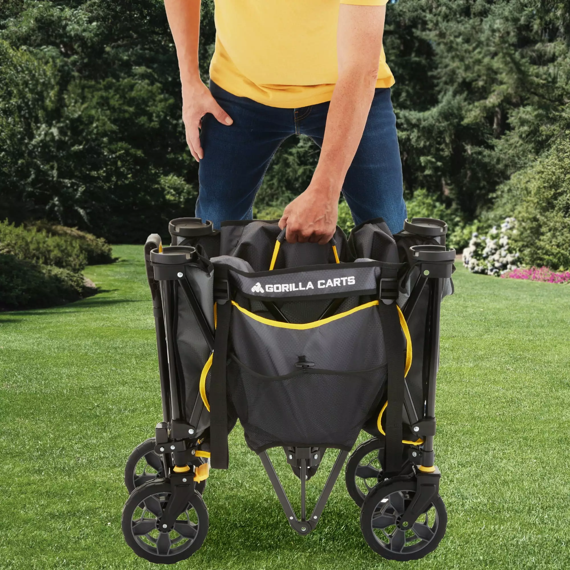 Whether it’s a day at the beach or a picnic in the park. there’s plenty of room for you to carry all of your stuff with the Gorilla Carts 7 Cubic Feet Utility Cart Collapsible Wagon with Oversized Bed. This foldable beach wagon carrier can carry up to 150 pounds worth of items for the maximum hauling experience. Pack up everything you need in this cart wagon with is huge bed measuring 36 inches long. 21 inches wide. and 15 inches tall. Expand the sides for umbrellas. chairs. camping gear. and additional storage. and use the handy zipper pockets on the pull cart for storing small items like your phone or keys. Enjoy the built-in cup holders for drink storage or for holding your phone so you can be hands-free. When hauling is complete. simply fold down the collapsible cart to its compact size for easy transport and storage. This all terrain wagon features a long handle that provides comfort when pulling and reduces fatigue in the process. Plus. the wagon includes flat-free. 7-inch tires with PVC treads that give you the versatility of a beach cart. garden cart. or a trusted Gorilla cart for navigating gravel or grass. Along with upgraded steering and brakes. the maneuverability system on this wagon is second to none. Constructed from a high-quality sport fabric. the foldable cart is designed with a soft. washable interior for easy cleaning and maintenance. All you need to do is a little pulling and the Gorilla Carts Collapsible Folding Utility Wagon will do the rest.