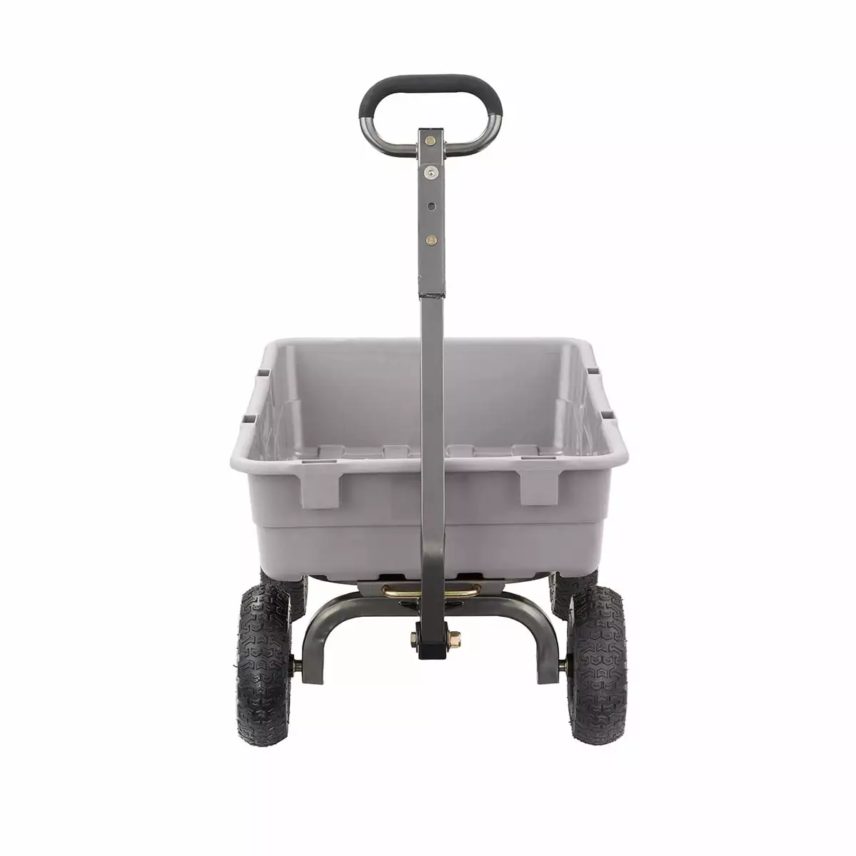 - Heavy-duty poly yard utility cart wagon with 800-pound capacity for maneuvering heavy objects around yards. gardens. or farms; Overall cart height of 20.3 inches
