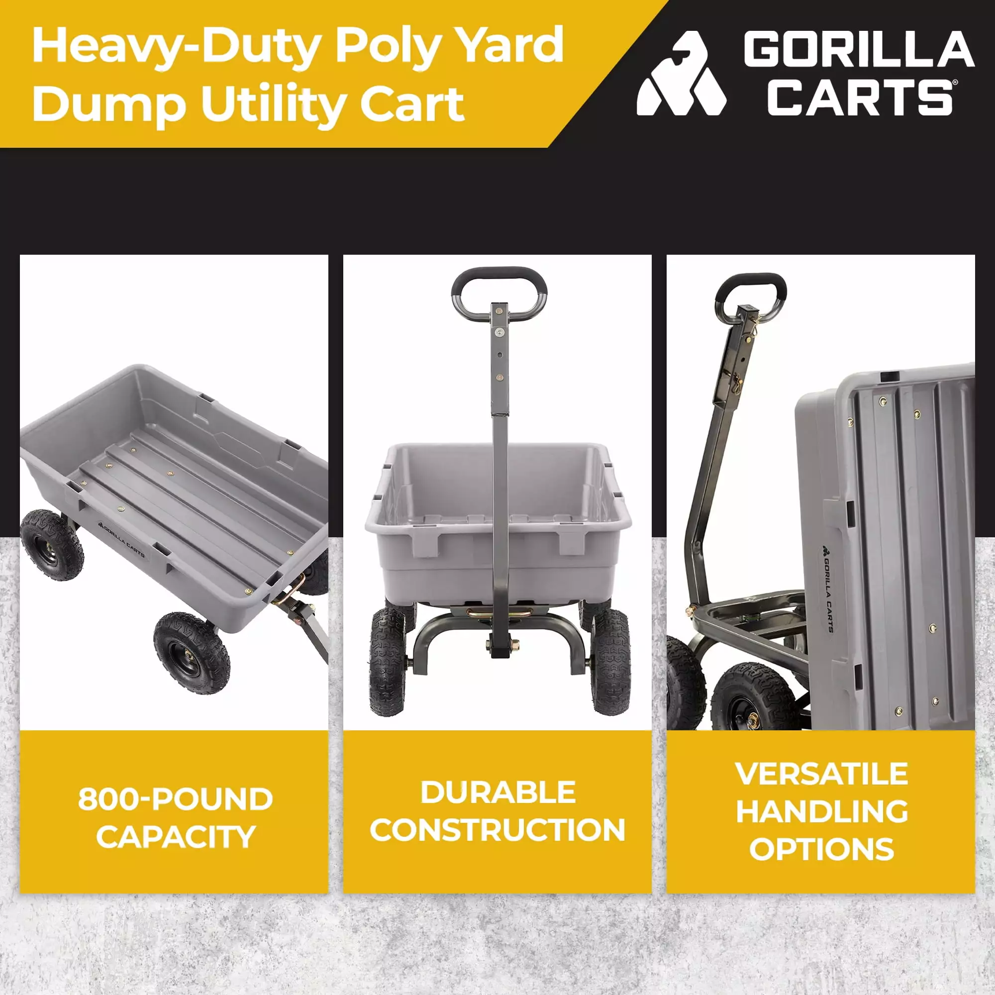 Gorilla Carts 800 Pound Capacity Heavy Duty Poly Yard Dump Utility Cart. Gray