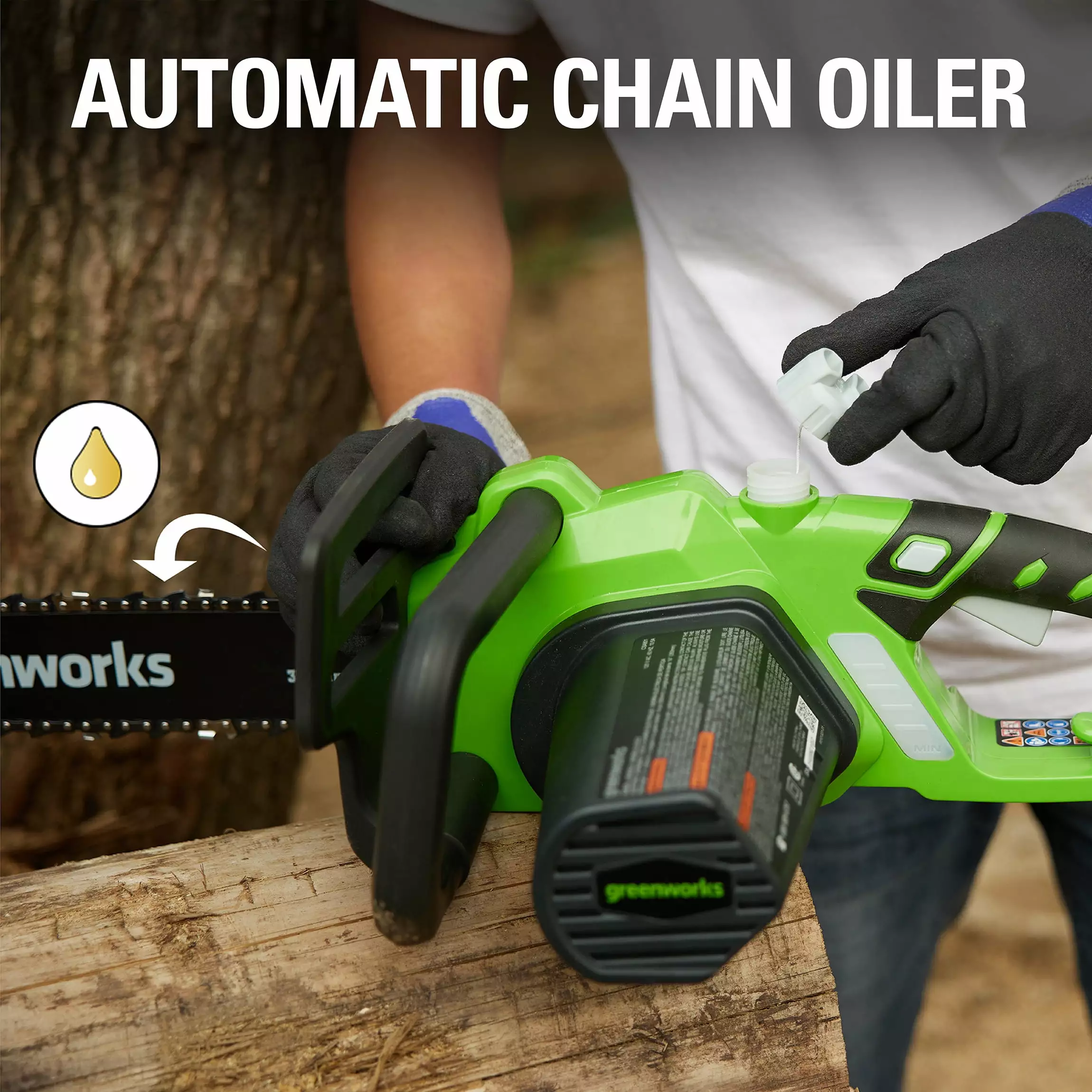 - Tool-less chain tensioning for quick adjustments so you can get back to the task at hand