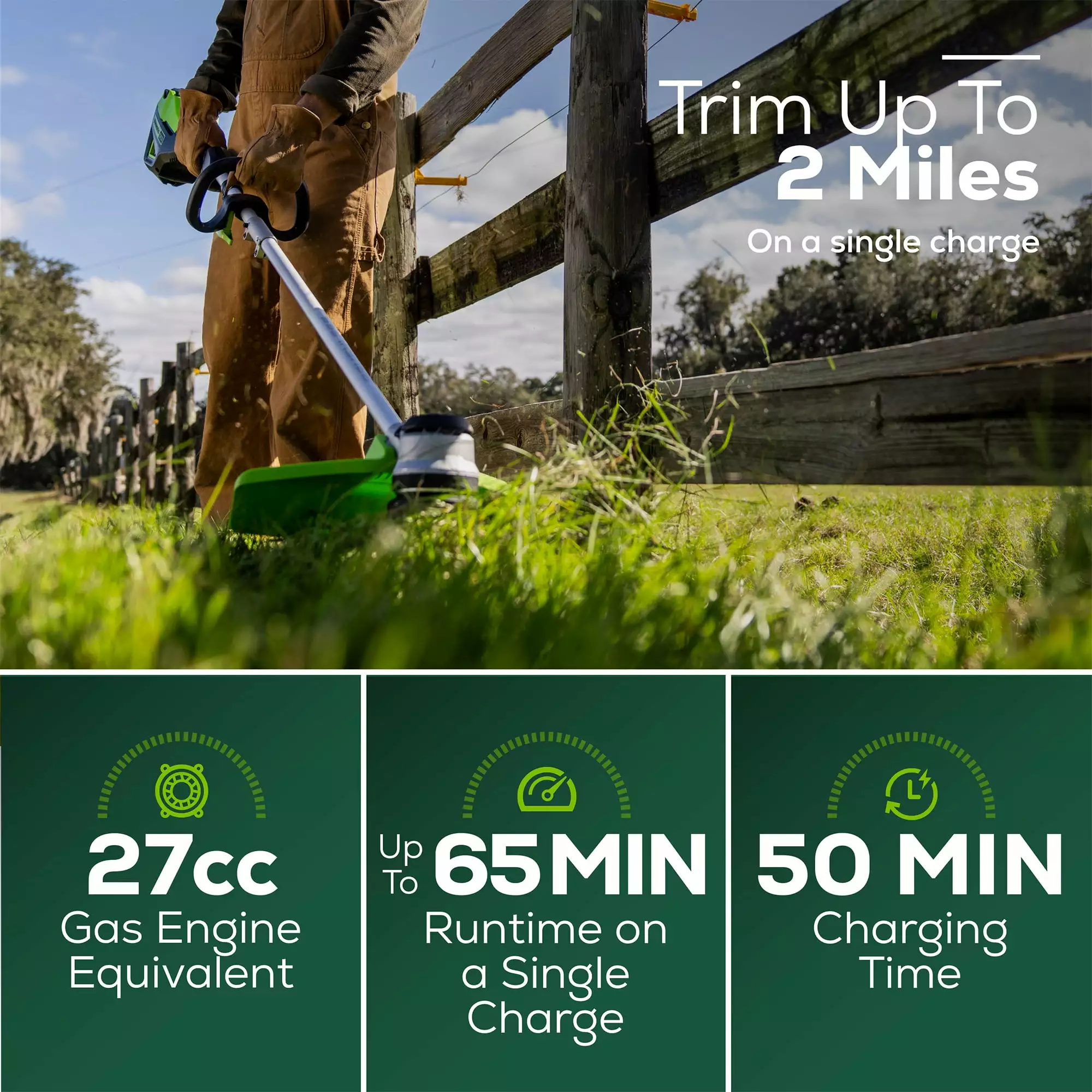 The powerful Greenworks Pro 60V UltraPower?cordless battery platform gives you all the power you need to tackle all your lawn care projects. Kick gas to the curb this spring and go green with no fumes. no mixing. no maintenance and no pull cords. Let Greenworks help you take the work out of yard work.