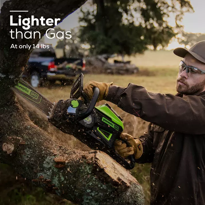 - Greenworks 60V 18 Cordless Chainsaw with 4.0Ah Battery & Charger: