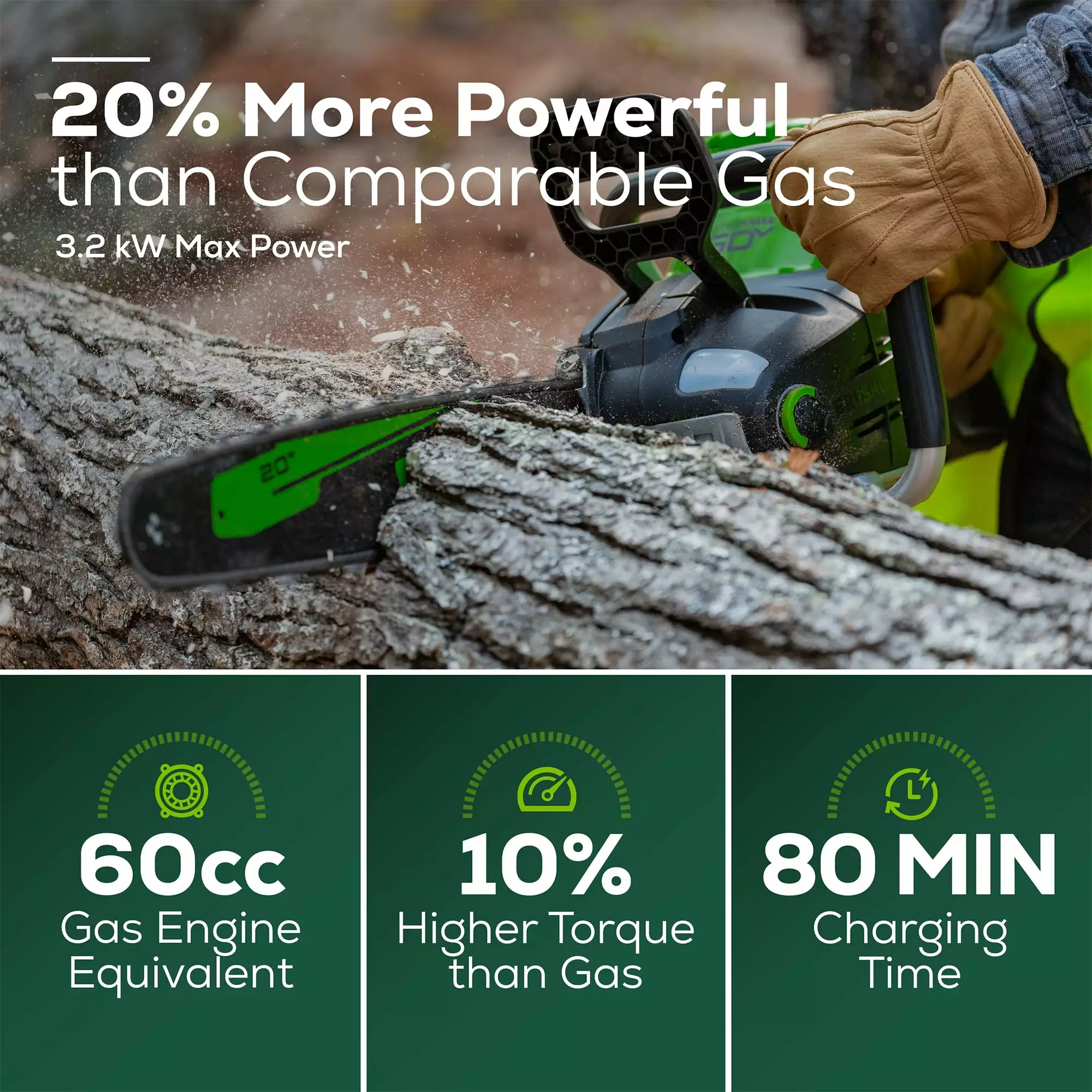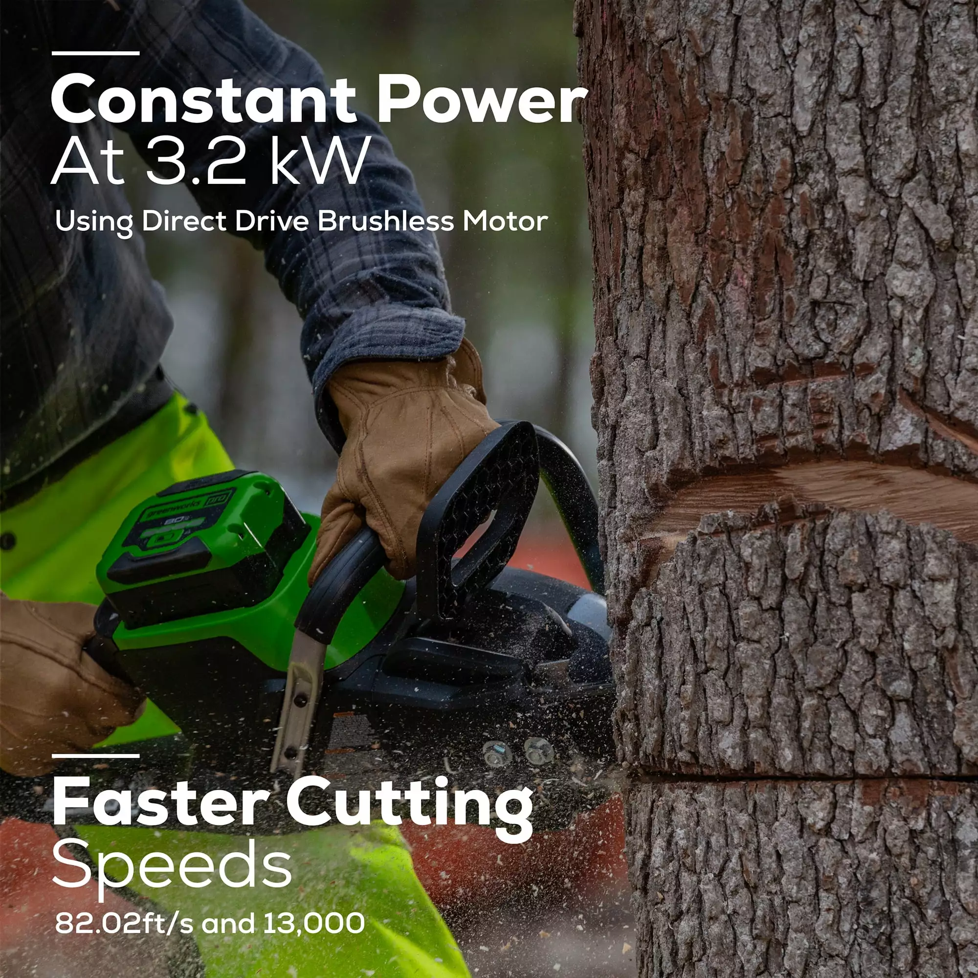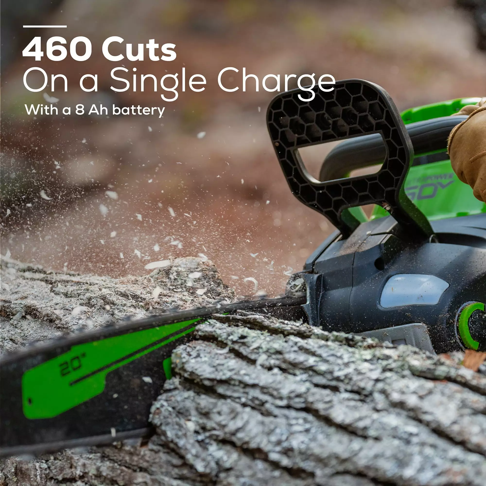 Greenworks 60V 20 Cordless Brushless Chainsaw with 8.0Ah Battery & Rapid Charger