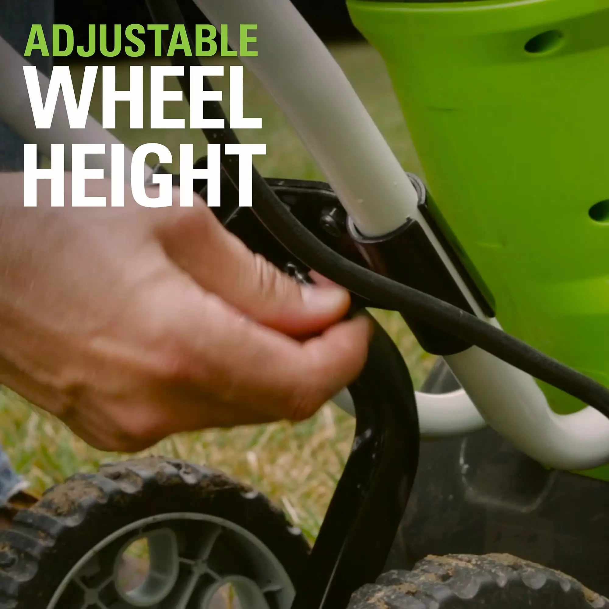- Greenworks cultivator handle folds down for simple and convenient storage and transportation