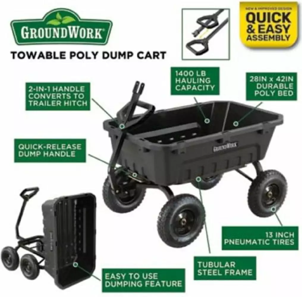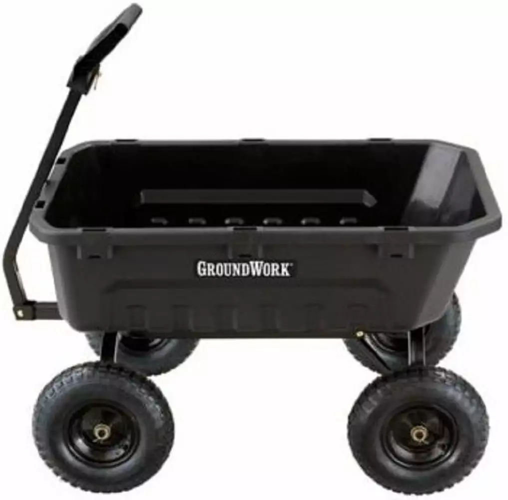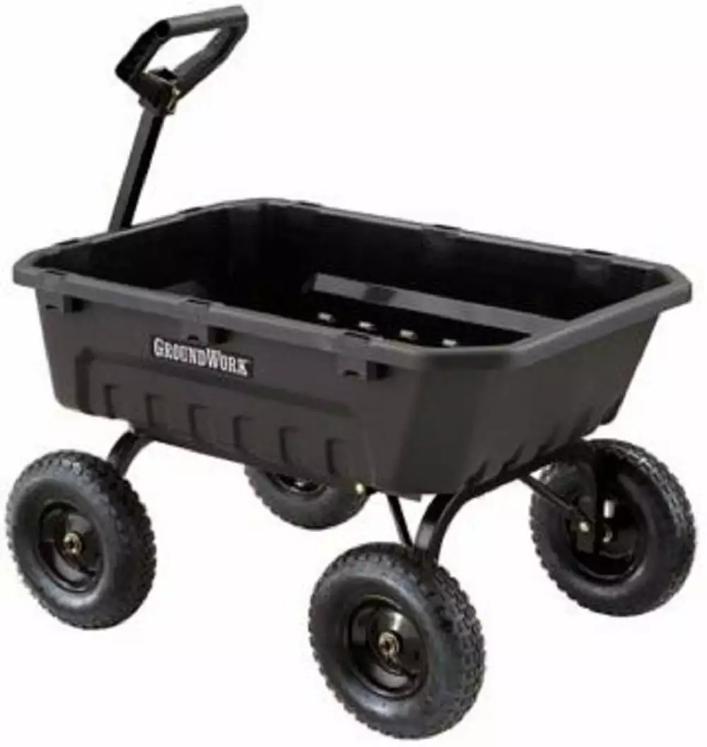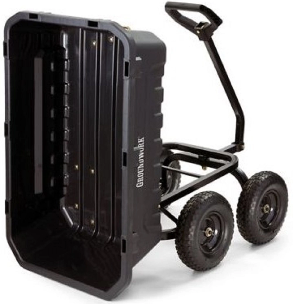 GroundWork GW-8 Poly Dump Cart 1400 lb 8 cu. ft. Pneumatic Convertible Steel