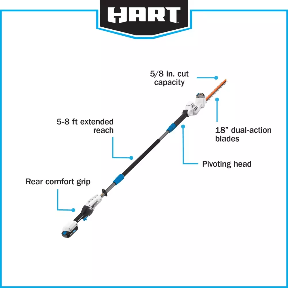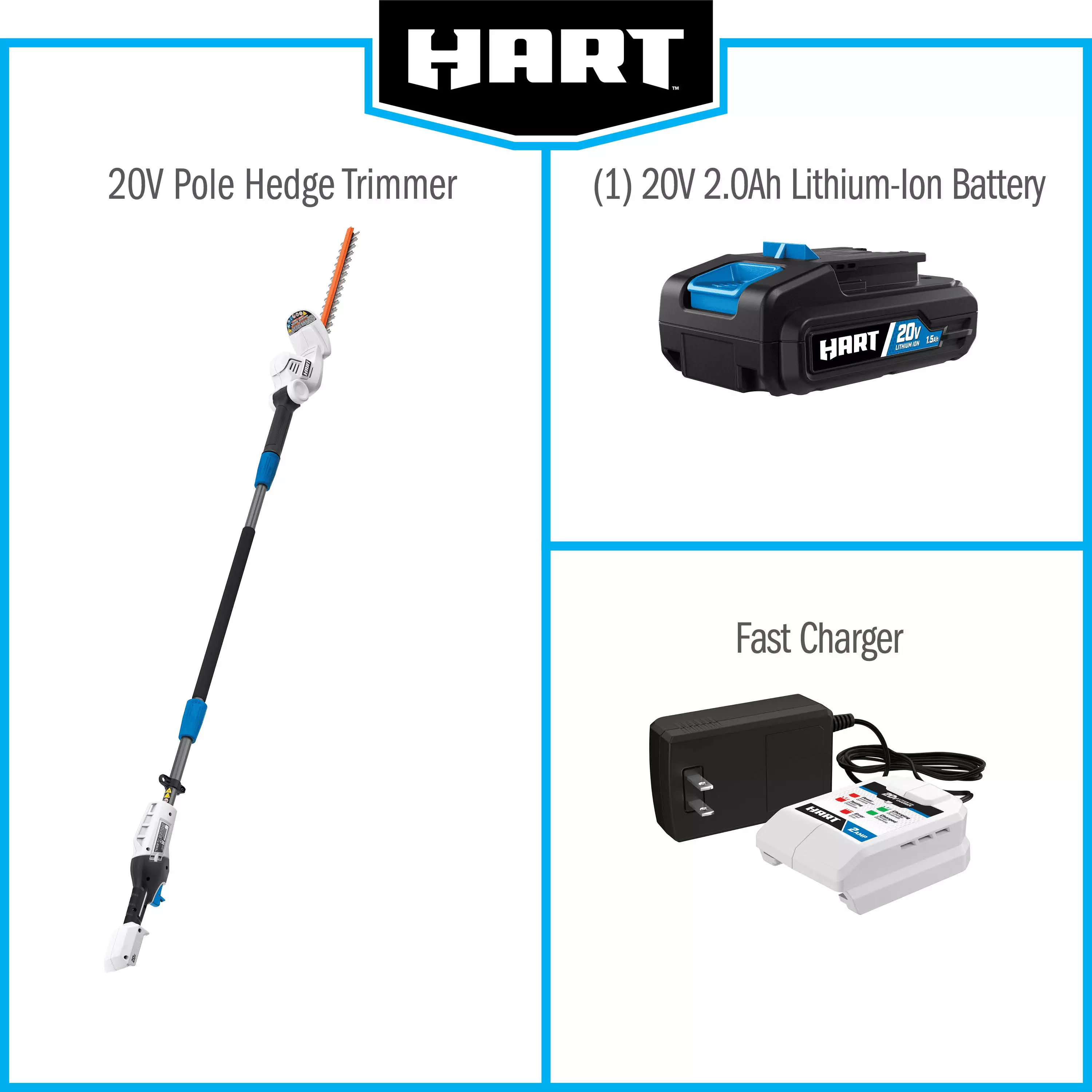 HART 20V Pole Hedge Trimmer Kit. (1) 2.0 Ah Lithium-Ion Battery