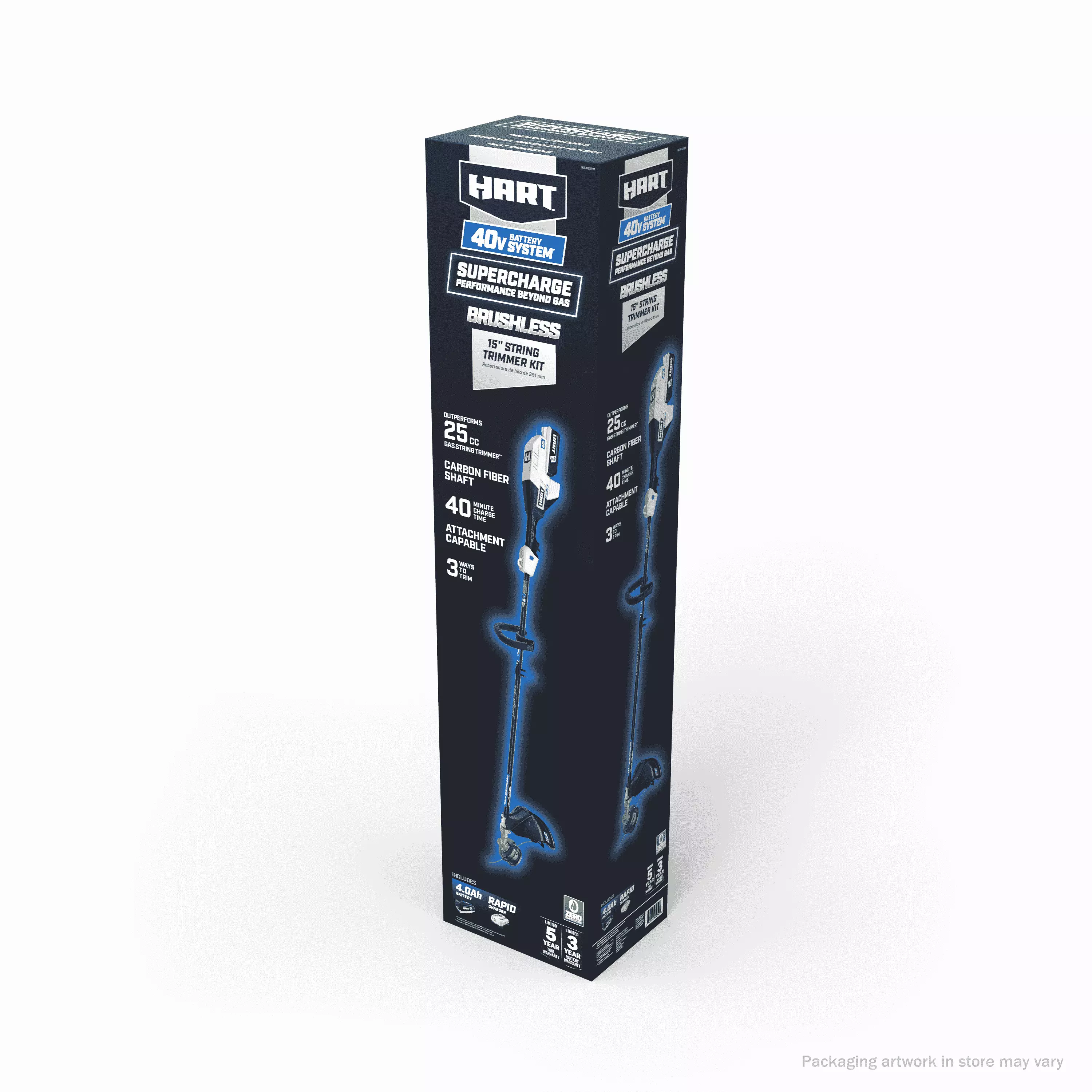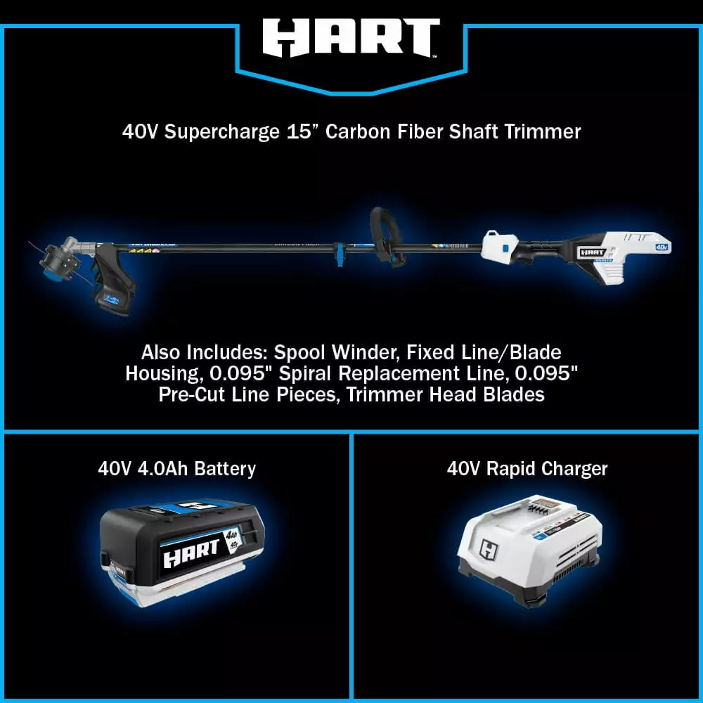 HART 40-Volt 15-inch SUPERCHARGE Carbon Fiber Shaft String Trimmer Kit. (1) 4.0 Lithium-Ion Battery