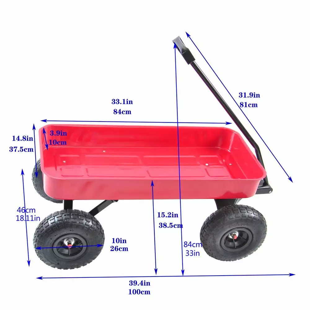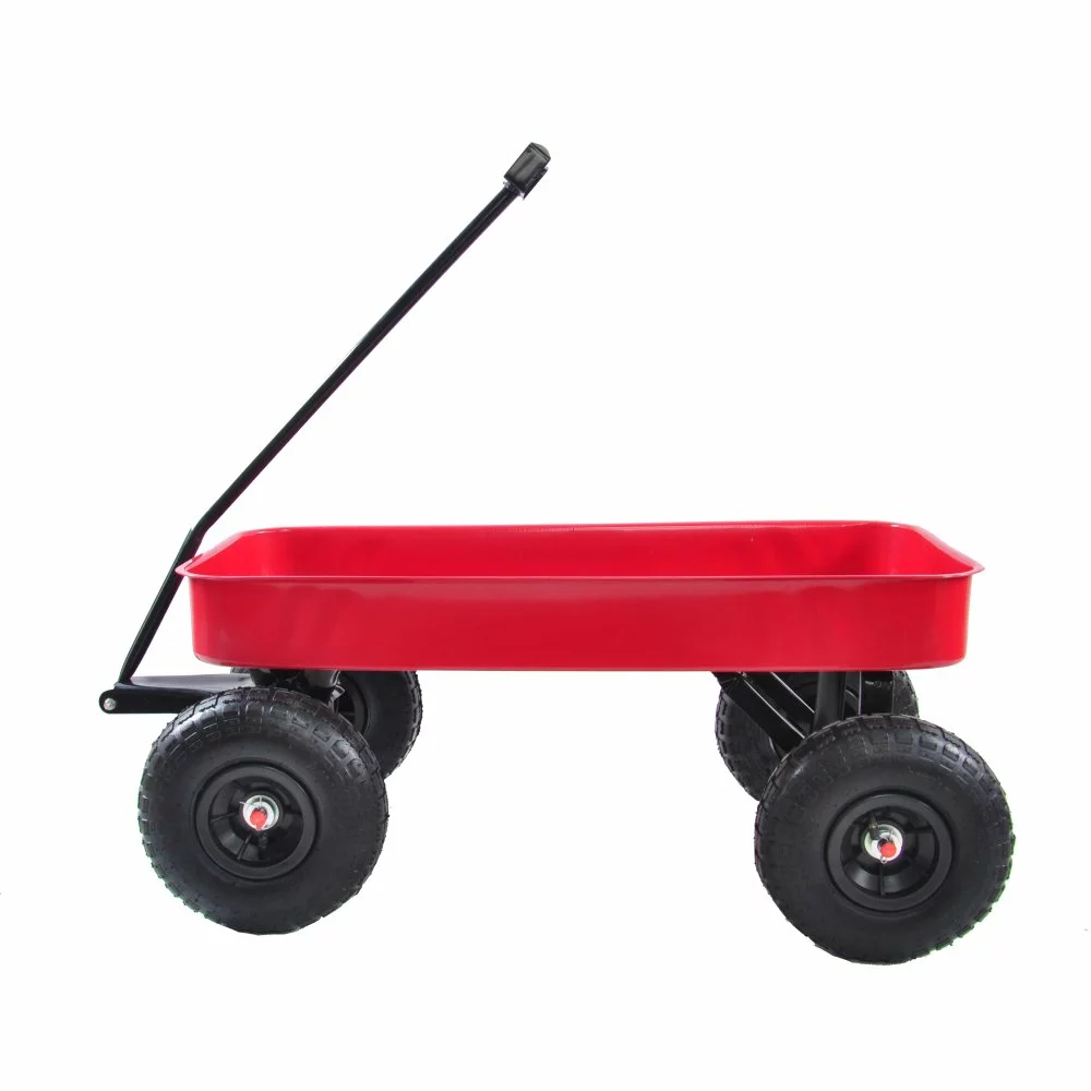 Hassch Metal Wagon Carrier Trolley Garden Dump Cart Utility Wagon Cart Max 178lbs for Kids Storage Outdoor Cargo. Red