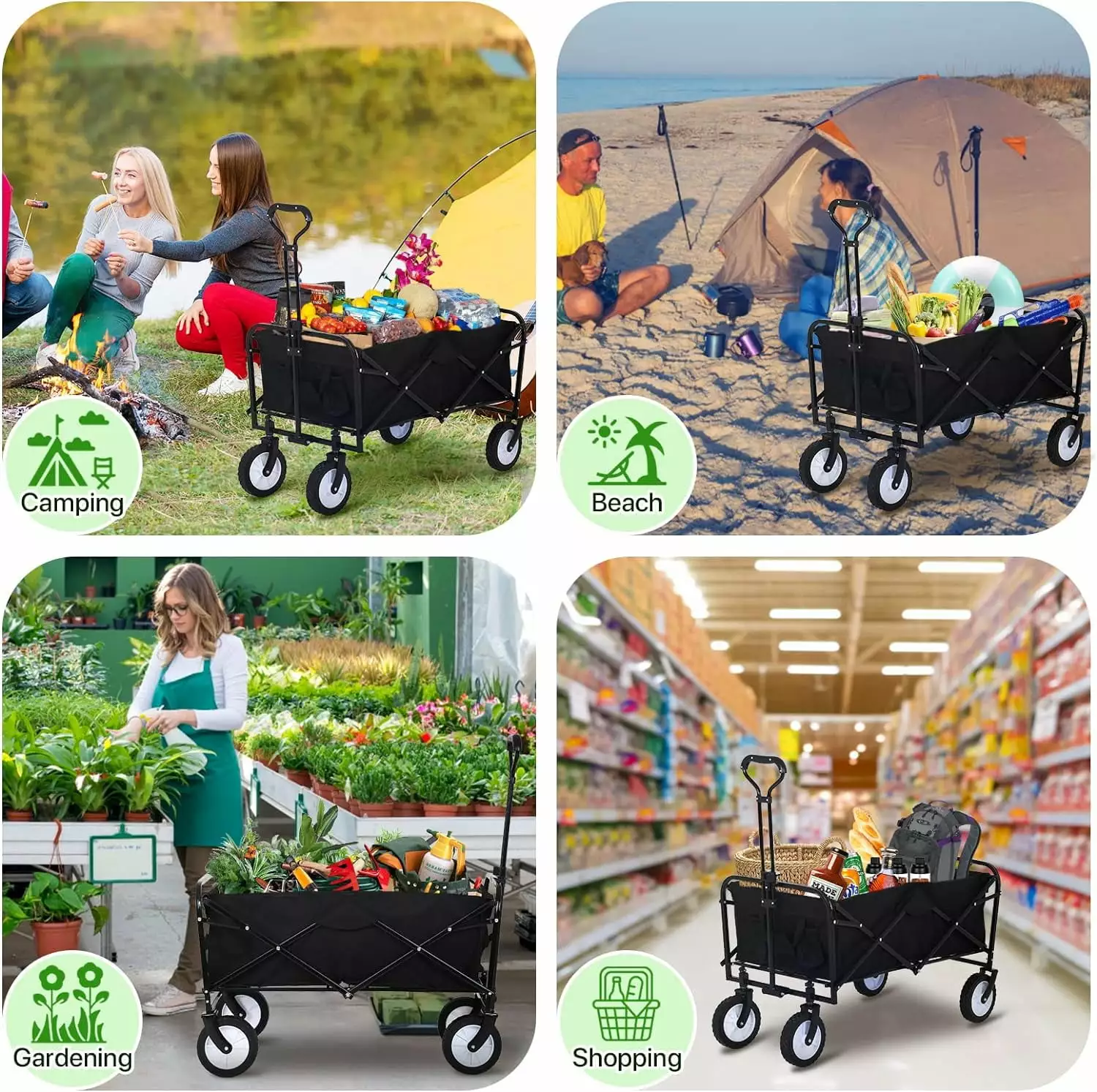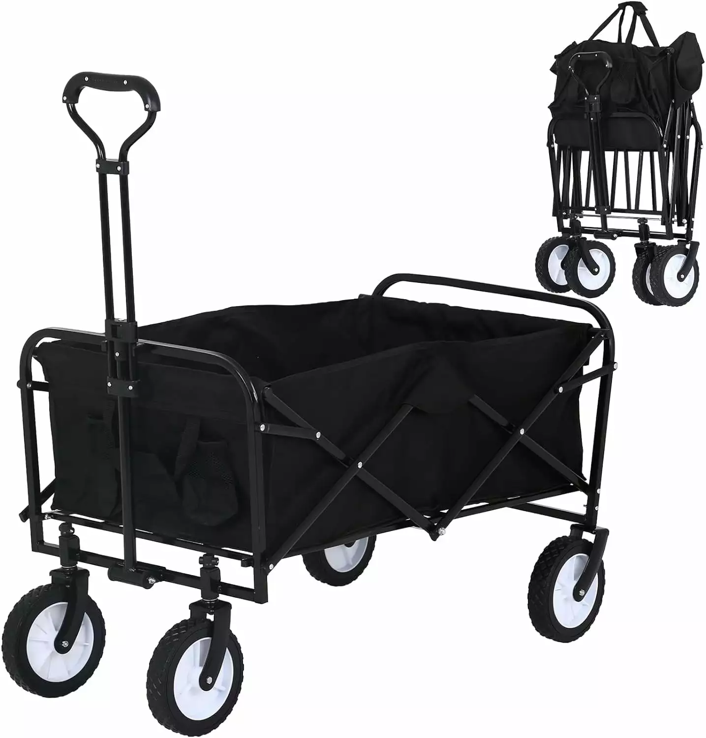 - ??Friendly Services & Warranty??Any concern about this grocery wagon please feel free to get in touch with us. we will pay every effort to offer you with satisfied shopping experience. we provide a one-year warranty. Folding wagon cart collapsible wagon cart with wheels wagon carts beach wagon outdoor wagon black wagon